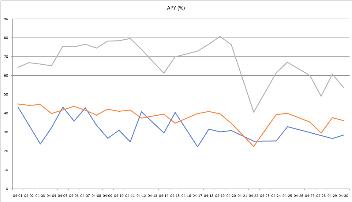 I'm recording daily delegator's APR & APY on STEEM blockchain based on random account's on-chain data.