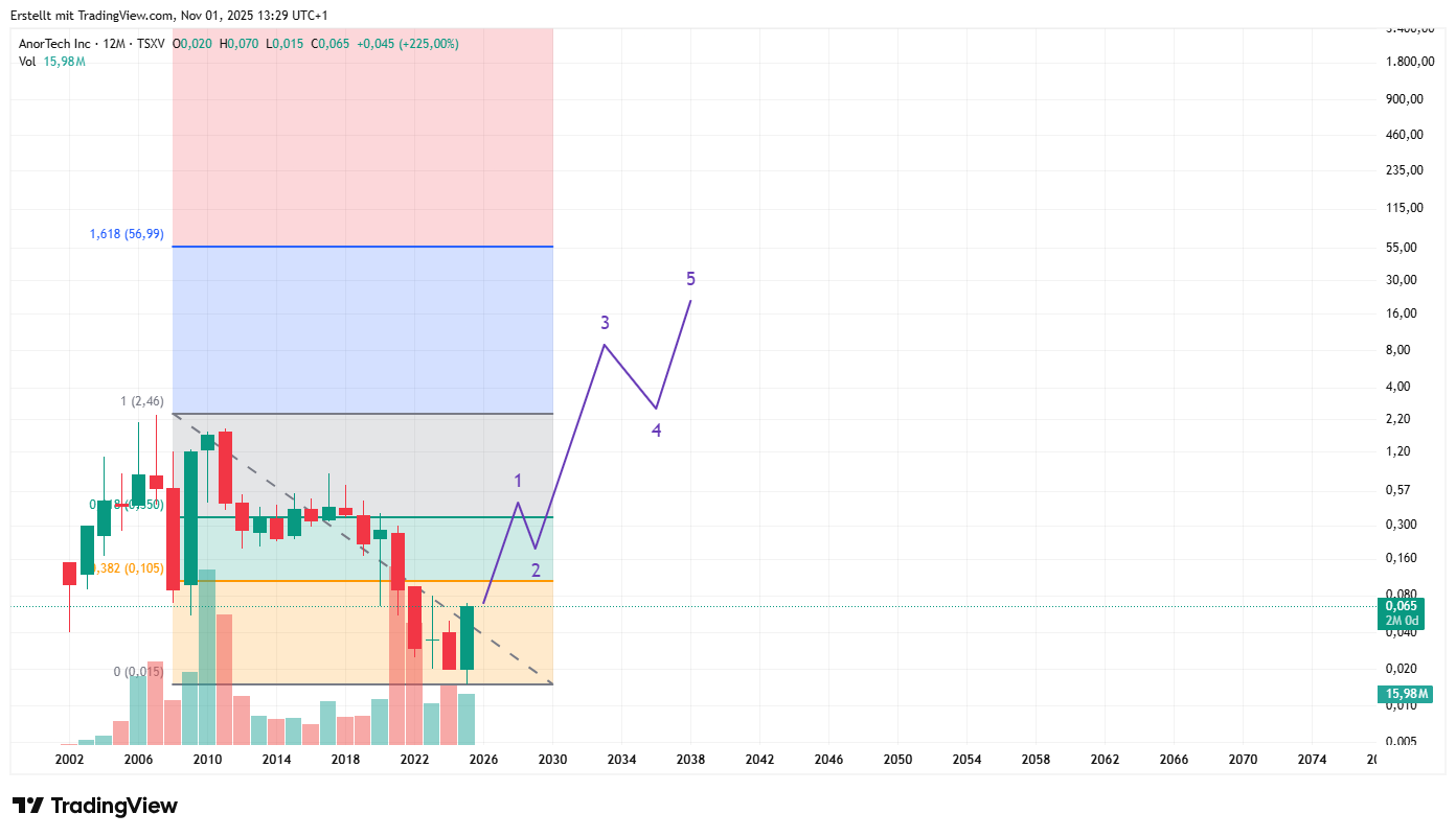 Daher kommt die Aktie von Anortech auf Platz 1 der Watchlist - starkes Insider Engagement, sehr gute Finanzlage für einen Explorer und angehenden Produzenten von Anorthosite und erhebliche Kursphantasie - auch im Falle der Entdeckung neuer Lagerstätte oder im Rahmen von Joint Ventures mit global playern im Rohstoffbereich, wie Rio Tinto, rechtfertigen ein entsprechendes Exposure. Langfristig sind im Falle eines Aufstiegs des Unternehmens zu einem Global Player mit einer Marcet Cap von rund 16-20 Milliarden USD sogar Kurs von bis zu 80 CAD oder mehr denkbar. So ein Szenario ist zwar statitistisch betrachtet derzeit als gering anzusehen, aber nicht ausgeschlossen. In solch einem bullishen Extrem Szenario würde der Kurs sich sogar um mehr als das 1000-fache erhöhen...