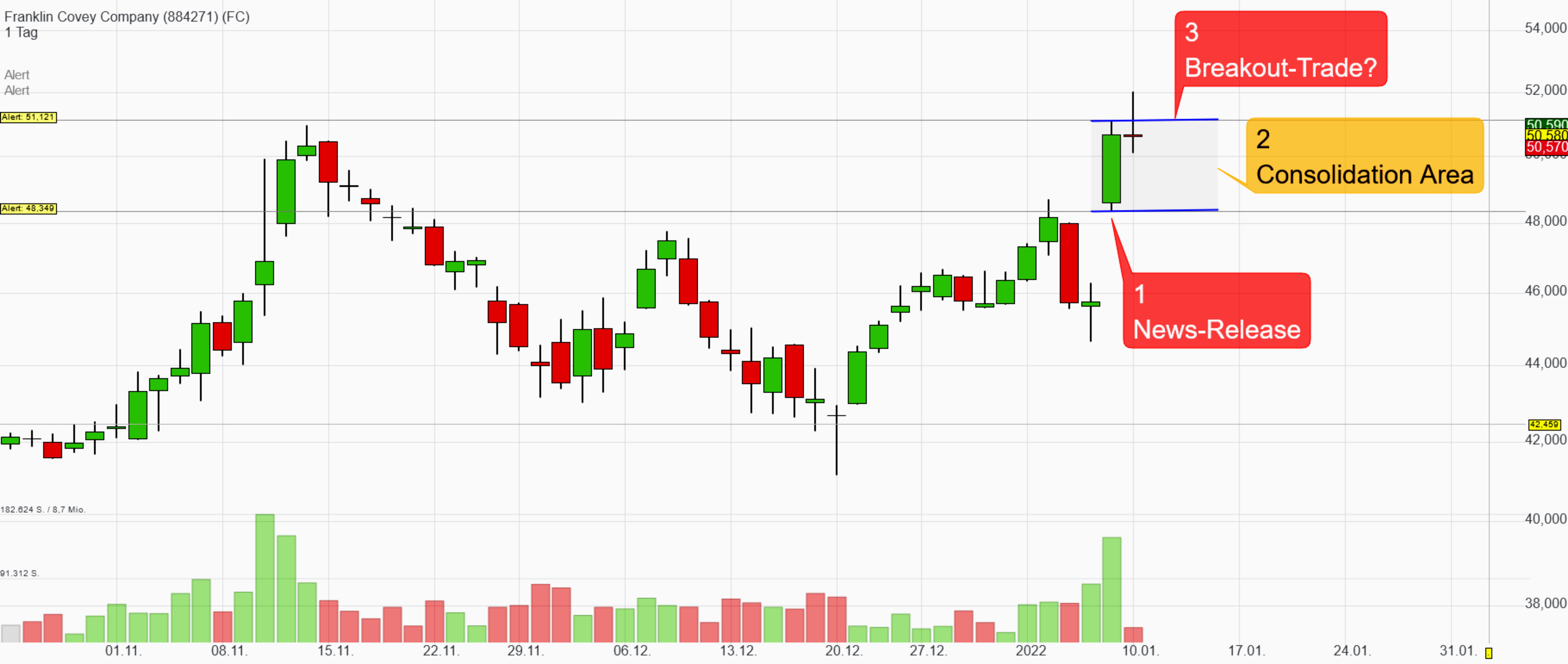 I can imagine that the Franklin Covey stock will continue to consolidate within the range and might break out of its consolidation channel as soon as the entire market has strength. If the stock moves above $51.10 with higher than average volume, it might be beneficial to buy the stock. When the stock price closes below its temporary low at $48.35 the trading scenario is invalid.