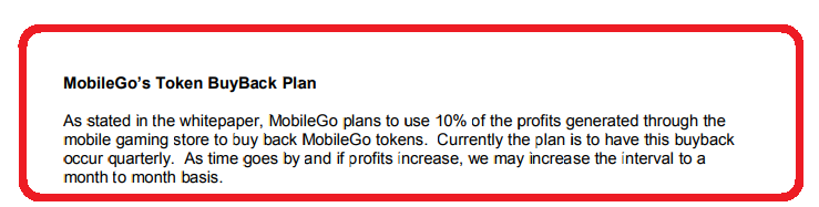 At the end of each quarter, 10% of GameCredit Mobile Store profits will be used to BUYBACK MobileGo tokens to BURN. Anybody who is even the slightest bit business savvy understands the basic laws of supply and demand. There are only 70,000,000 MGO tokens on the market. If the team has a strong quarter, a MAJOR chunk of these MGO tokens can be taken off of the market, creating an artificial drop in supply. Even stagnant demand growth leads to a technical increase in overall demand when supply drops.