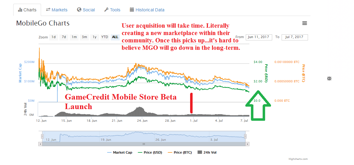 Unlike many cryptocurrencies on the market, MGO-GAME already has a product on the market - the GameCredit Mobile Store. Why is this a big deal? MobileGo token is down to $1.11 today. Prime time to buy if you ask anybody who has been following this project.