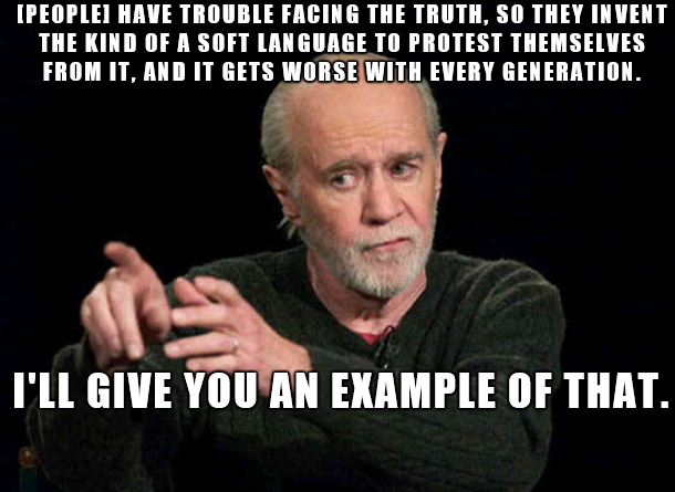PS: Again remember paraphrasing George Carlin, "The meaning of the words is only what the syntax and the person reading, listening, etc feels" ...So no bad juju with anybody but our shitty selves with the filthy language, it surely makes life funnier to live when we will die anyway looking for the total hedonism in a freeze frame dying second ^^ so keep cool and let's go*