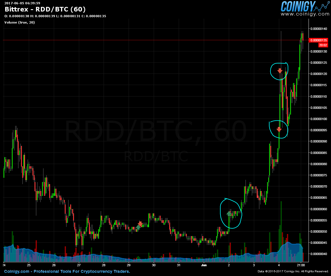 [RDD] Reddcoin interested me the first time I researched it, I like the idea of sending tips with crypto through all social media platforms. I also really like projects with potential that have been dormant for a while but have news on releasing an update. RDD had given hints they were going to release in the next few weeks so I took advantage and bought some. I quickly came across something else I needed to invest in sooner and sold my RDD almost as fast as I bought it, which you can see on the image below. However 5 days later I got news again it might be going forward so I quickly invested once more.