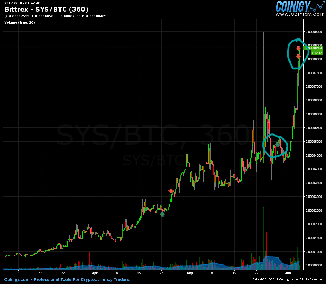 I had traded Syscoin before and it looked promosing from many prospectives, but it was the latest news i spotted in the ann on this bottom of this page that let me know it was going to pump https://bitcointalk.org/index.php?topic=1466445.1400. Below you can see i bought on the 28th and I sold at the peak .
