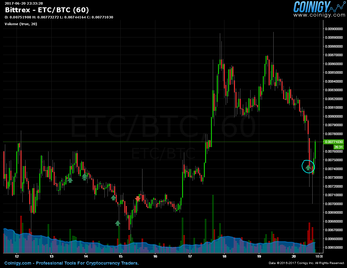 Whenever I see big red candles it is like a sale day to me and I try to take advantage where I can. ETC is one I firmly believe will do well in the future. I decided to buy another 50.