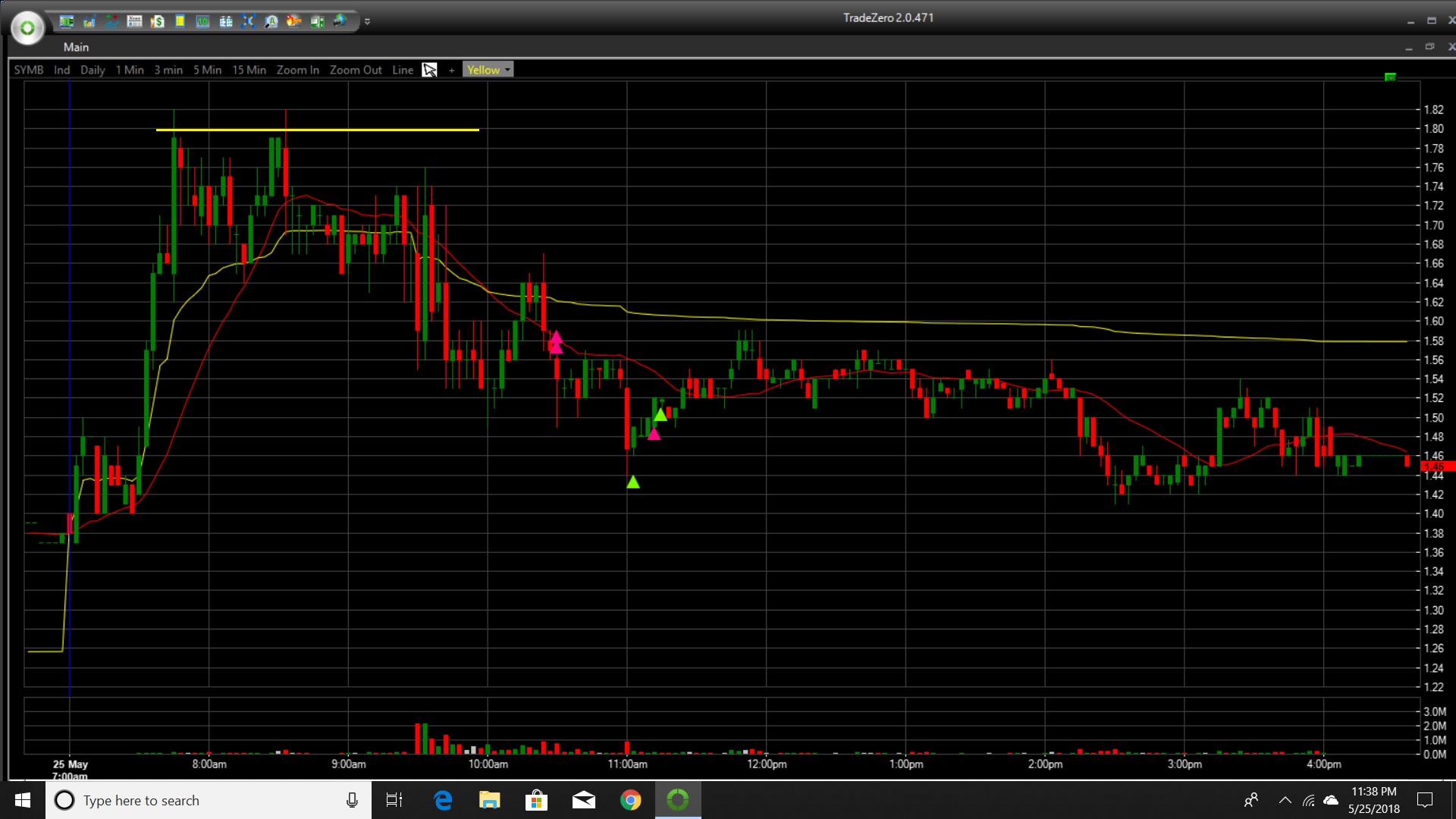 A nice win on this one, I wanted to see this test 1.80 again after the market opened but it couldn't it was just to heavy and I didn't go in in the 1.70s due to fear of being squeezed so I let things settle down and I entered when the downtrend was pretty clear. Due to my far-from-optimal entry I wasn't too patient with it and I took half my position into the first washout under the key 1.50 level and then I added on the bounce to 1.50 and then I took the entire position off when 1.50 held. I need to work more on my entries.