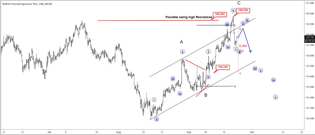 Technical analysis and Elliot Wave Count in BRITISH POUND/JAPANESE YEN