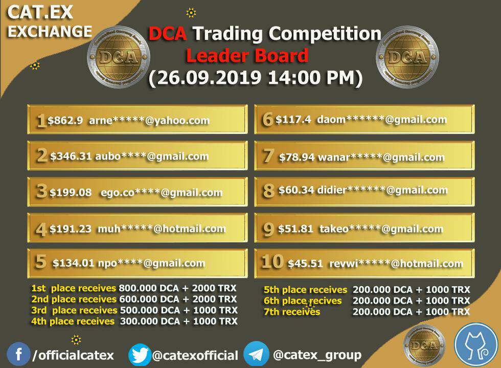 The Catex Exchange is currently organise a trading competition for DCA token.