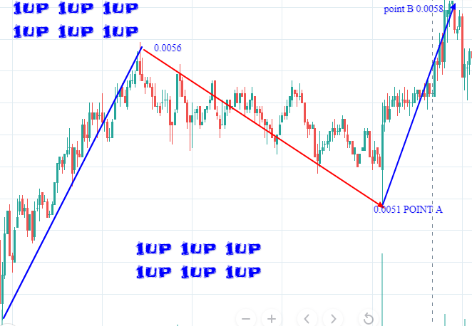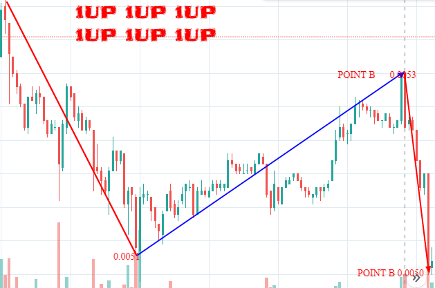 The above is the 1up in terms of USDT. There are two points indicated. Point A and B. Before A, the market has been trending downwards all the way to $0.0051. This downwards market movement is due to few engagement in the platform thus causing advertising to decline demanding the token to advertise on the platform. This in turn causes the utility function to decline thus the price declines to $0.0051 as stated above. At around $0.0051, there is an increase of engagement on the platform thus advertisers are demanding for the token in order to use them to advertise their business on the platform. This causes the utility function to increase again thus causing the price to increase to Point A at around $0.0053. At point A, some users are again starting to reduce their engagement on the platform . This causes the advertisers to again stop demanding the coin thus causing the utility function to decline. Some users are also starting to request for withdraw in order to sell them . This result to a further decline in price to point B at around $00050. If the engagement will decline, then more advertisers will also decline their demand for the coin thus causing the price to further decline to below $0.004 although I am not bearish for the token. I am just bullish so I think you should consider buying