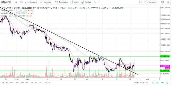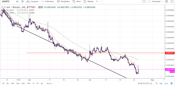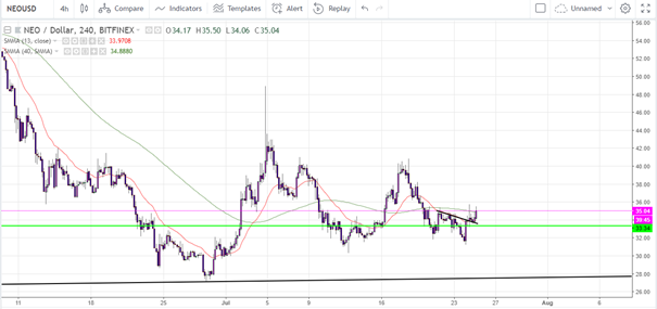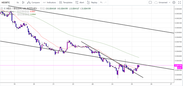 NEOUSD on the other hand has seen some rise with the gain of BTC, support has been strong.