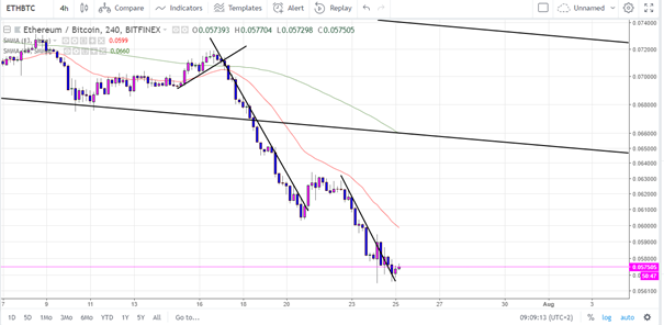 ETH has broken its downfall resistance but has made a new btc low last night, there is a small chance of consolidation, cautios when trading ether for short term gains,