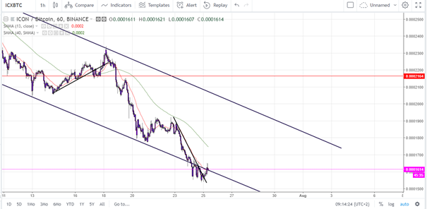 Icon has broken the 1HR Resistance line but is still trading clearly in its 4HR bear channel, signal is upgraded to neutral bearish
