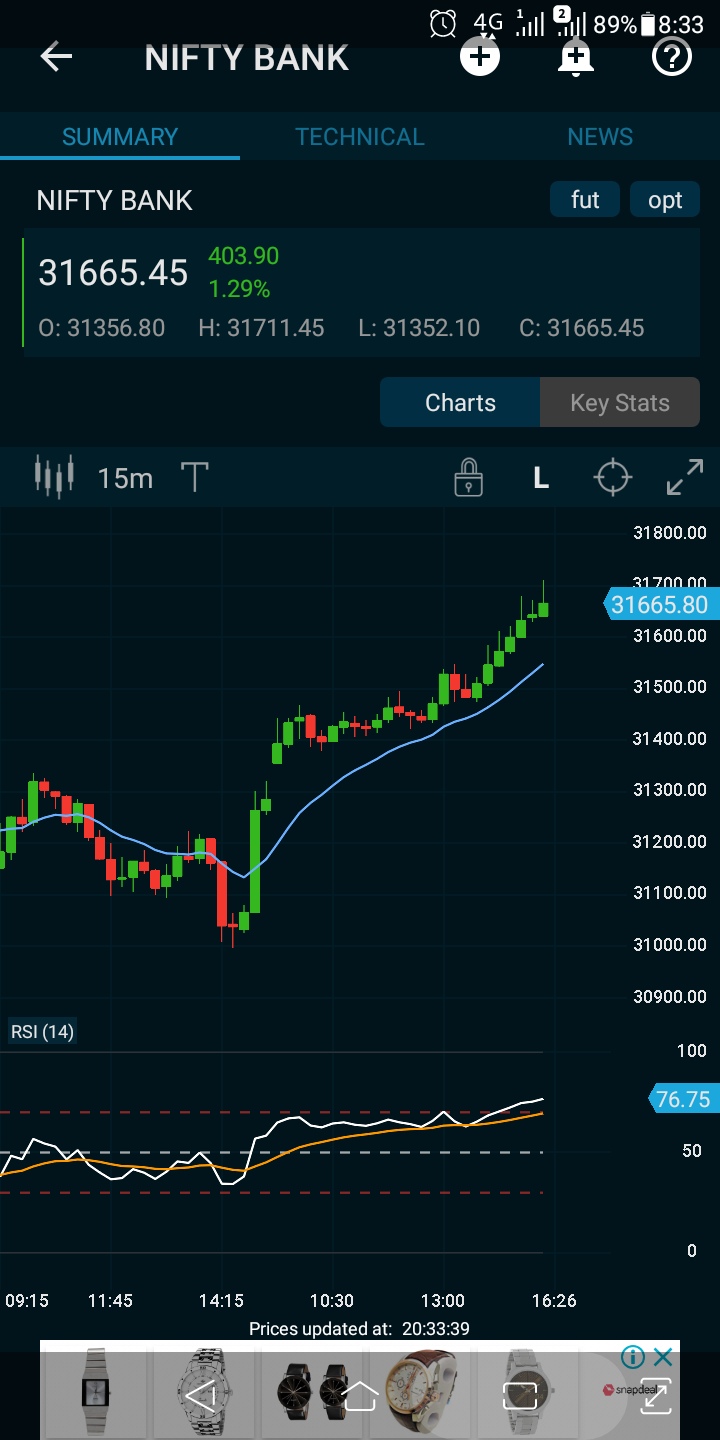 Entry in banknifty option Pe as it's simply going up, there is no strength in candle nor in daily nor in intraday.