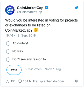 The market leader for cryptocurrency stock data, Coinmarketcap apparently thinks about having users vote on whether and which cryptocurrencies should be listed on the website.