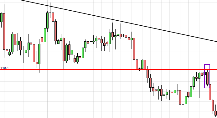 Parfois, le cours teste un support/résistance sur une grande mèche et clôture au-dessus/en-dessous du niveau (en cas de forte volatilité)Soit sur un ordre stop
