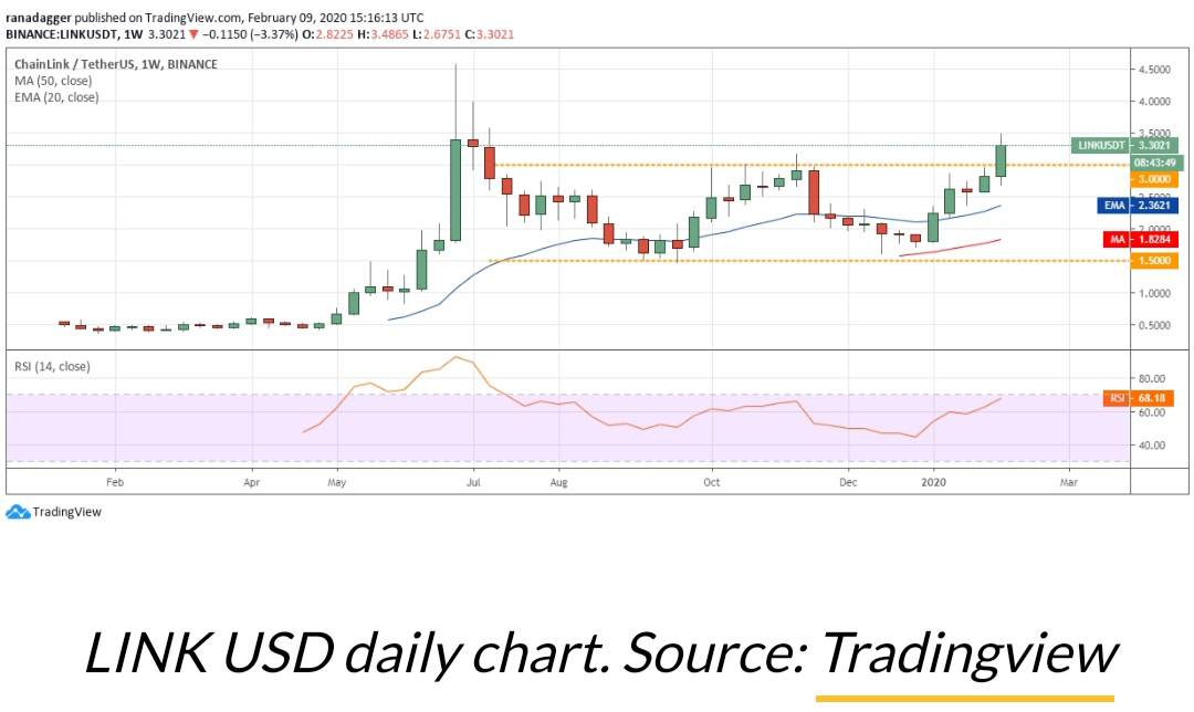 The LINK / USD pair has slipped out of the long-term range that has been held in recent months. This shows that the bulls have outperformed the bears and continue to buy at higher levels.