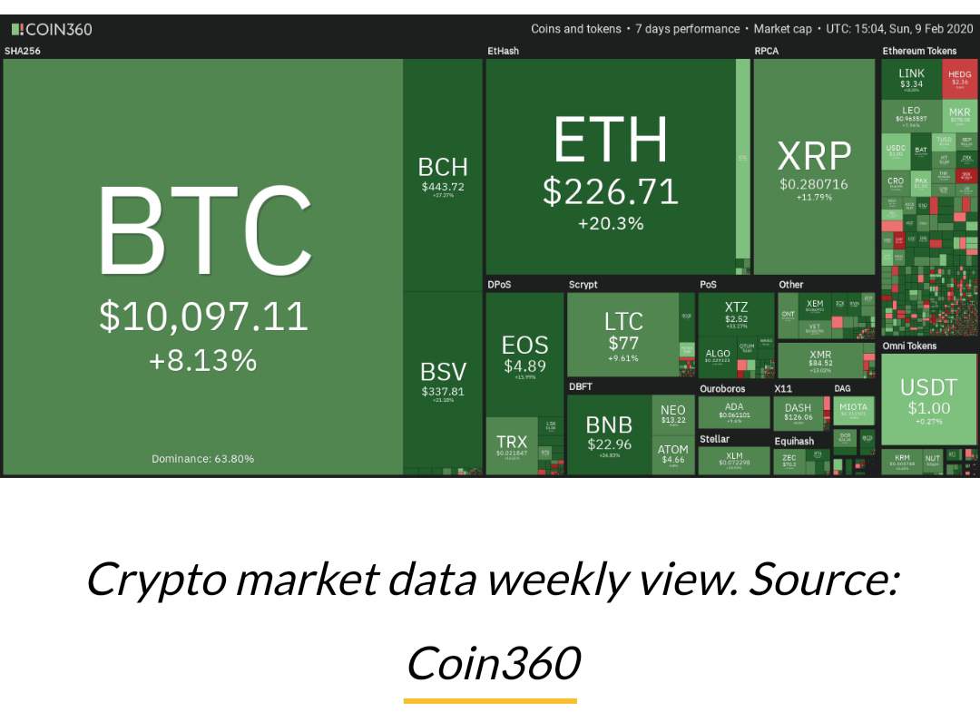 Top 5 Cryptos This week feb 8 :Tezos,Binancecoin,BitcoinSV,Ethereum,Link
