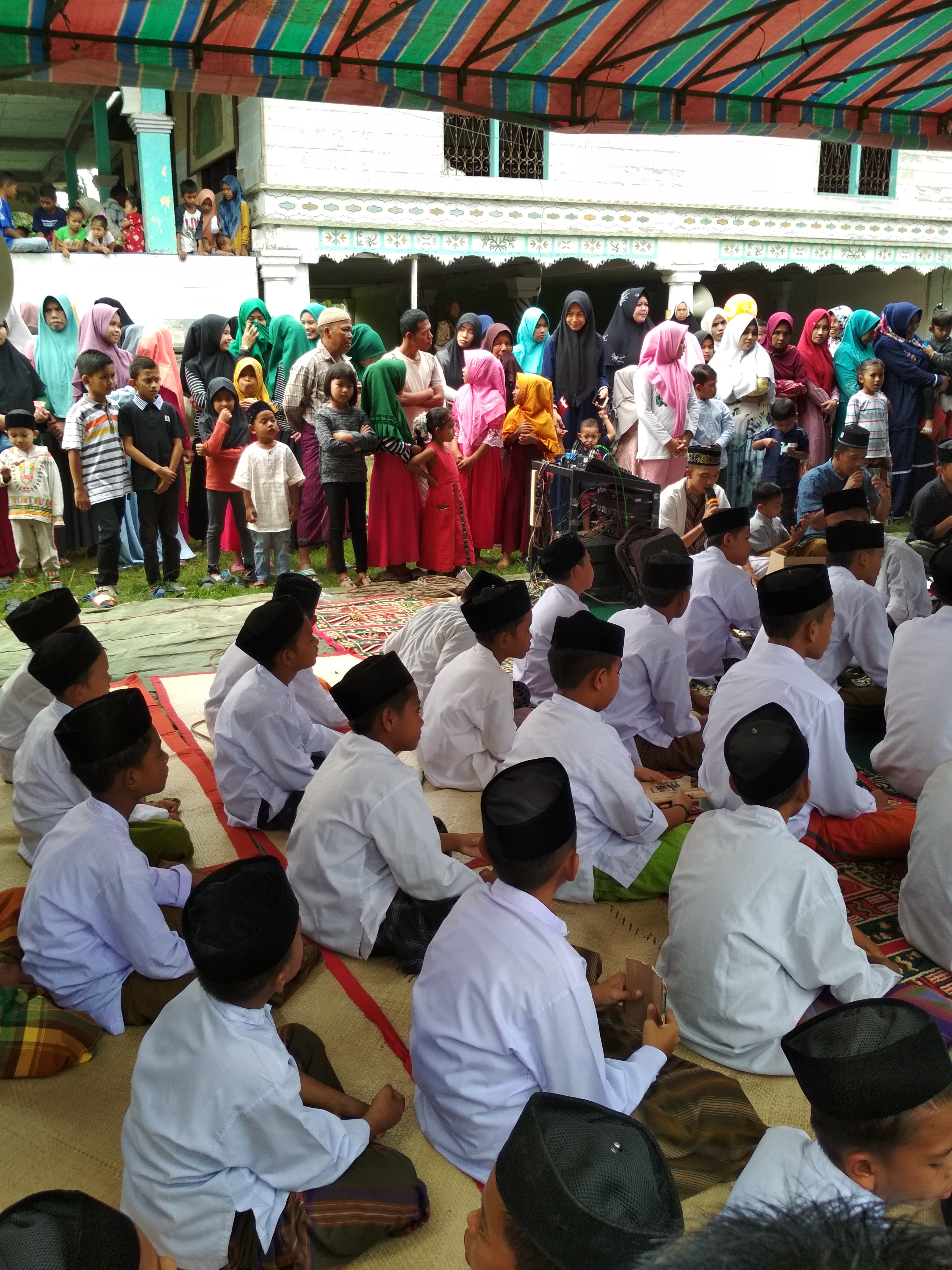 Sehabis berzikir, yang membawakan zikir dan masyarakat beserta anak yatim yang menyaksikan disuguhkan makanan dengan duduk rapi tanpa harus berebut.