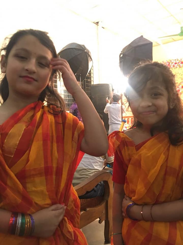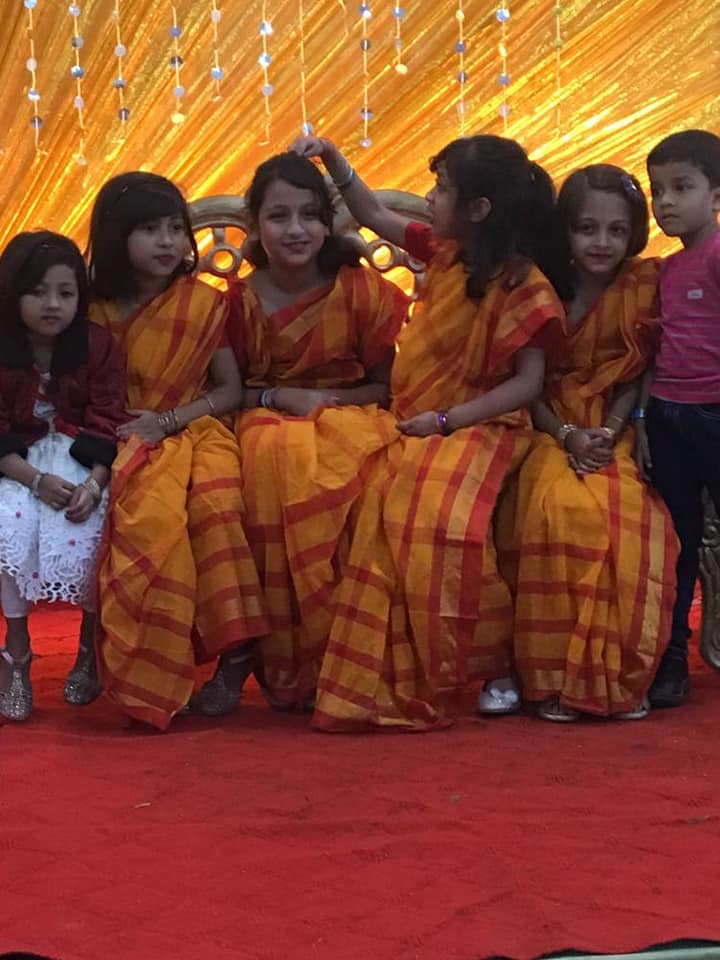 They all are my nieces. Everyone is wearing Sarees. This is our country's traditional dress. They looks so pretty.