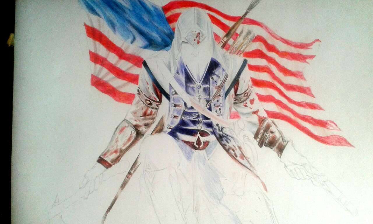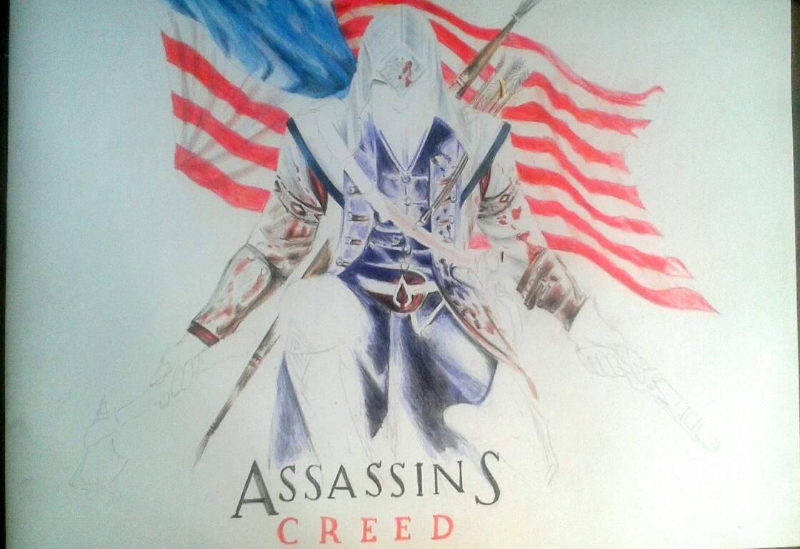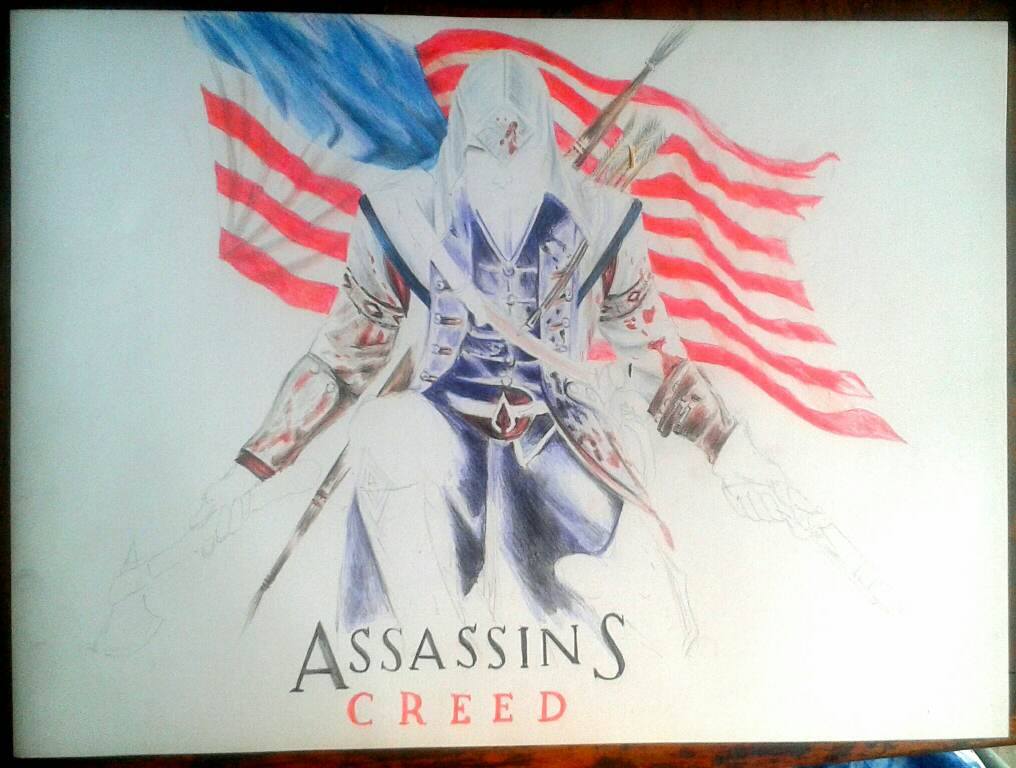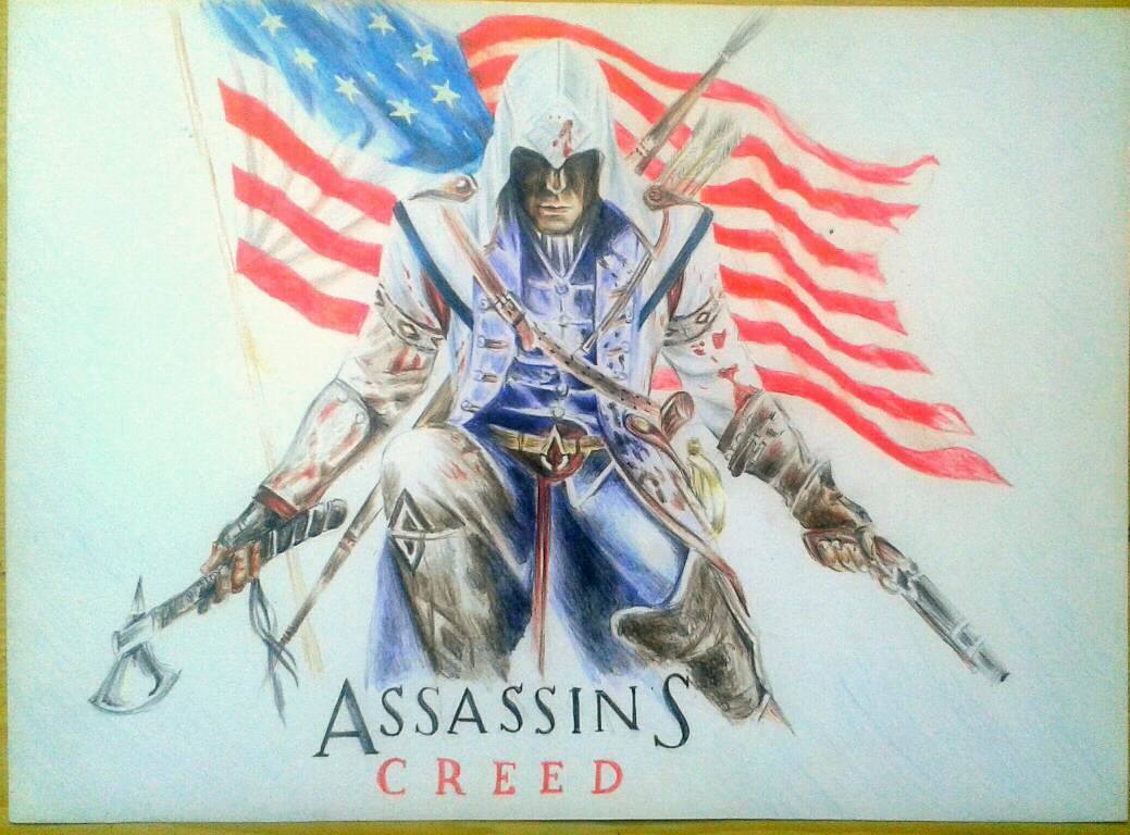 Assassins Creed is a series of videogames, comics, books, and short fiction with a lot of action and adventure, the story revolves around the conflict between two "factions" that fought each other for hundreds of years, another spectacular video game reflected in a drawing.