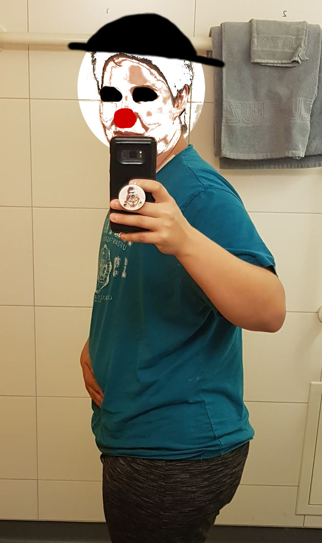 Mein Bauch ja klar, der gehörte ja schon immer zu mir aber die Fettmasse, nein. Die gehört definitiv nicht zu mir. Da hat sich schon viel getan im letzten Jahr und da wird auch noch einiges passieren. Ich bin zwar seit 20 Jahren übergewichtig, habe mich selber aber nie als übergewichtigen Menschen gesehn.