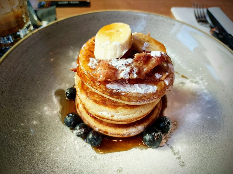 I got pancakes with banana, blueberries and bacon that day and it was quite good as well. Savory and sweet - a winning combination.