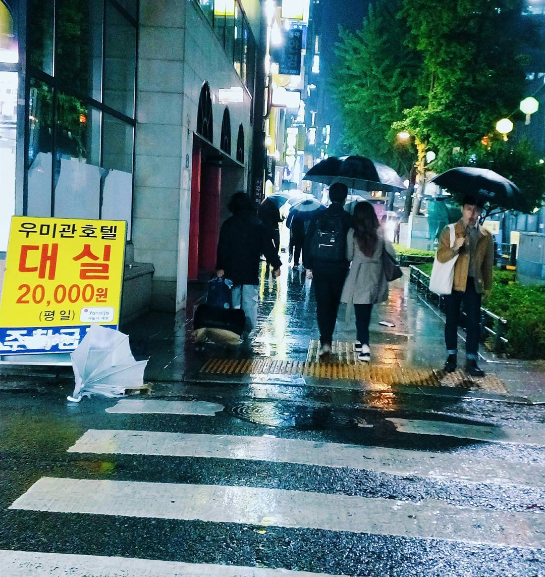 After getting to the inn and resting - being tired enough to lift the suitcase on the subway -, it's night night. From the nearest one, Jonggak Station.