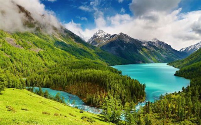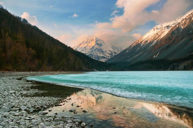 One of these are Kucherlinsk lakes. They are located in the mountainous regions of Altai on the Kucherla River (one of the Katun tributaries) of the Ust-Koksovsky District. Among these lakes there are several reservoirs: the Lower, the Upper, and the Big Lake.