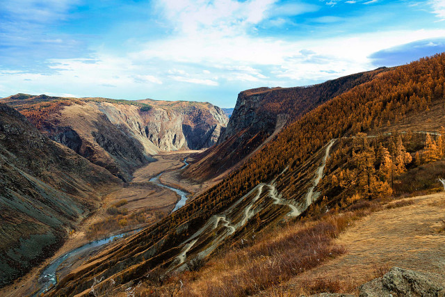 The pass is the only road through which cars can drive into the valley of the Chulushman River, and therefore to the southern coast of Lake Telet. Also in this wilderness there are two villages Koo and Balykcha.