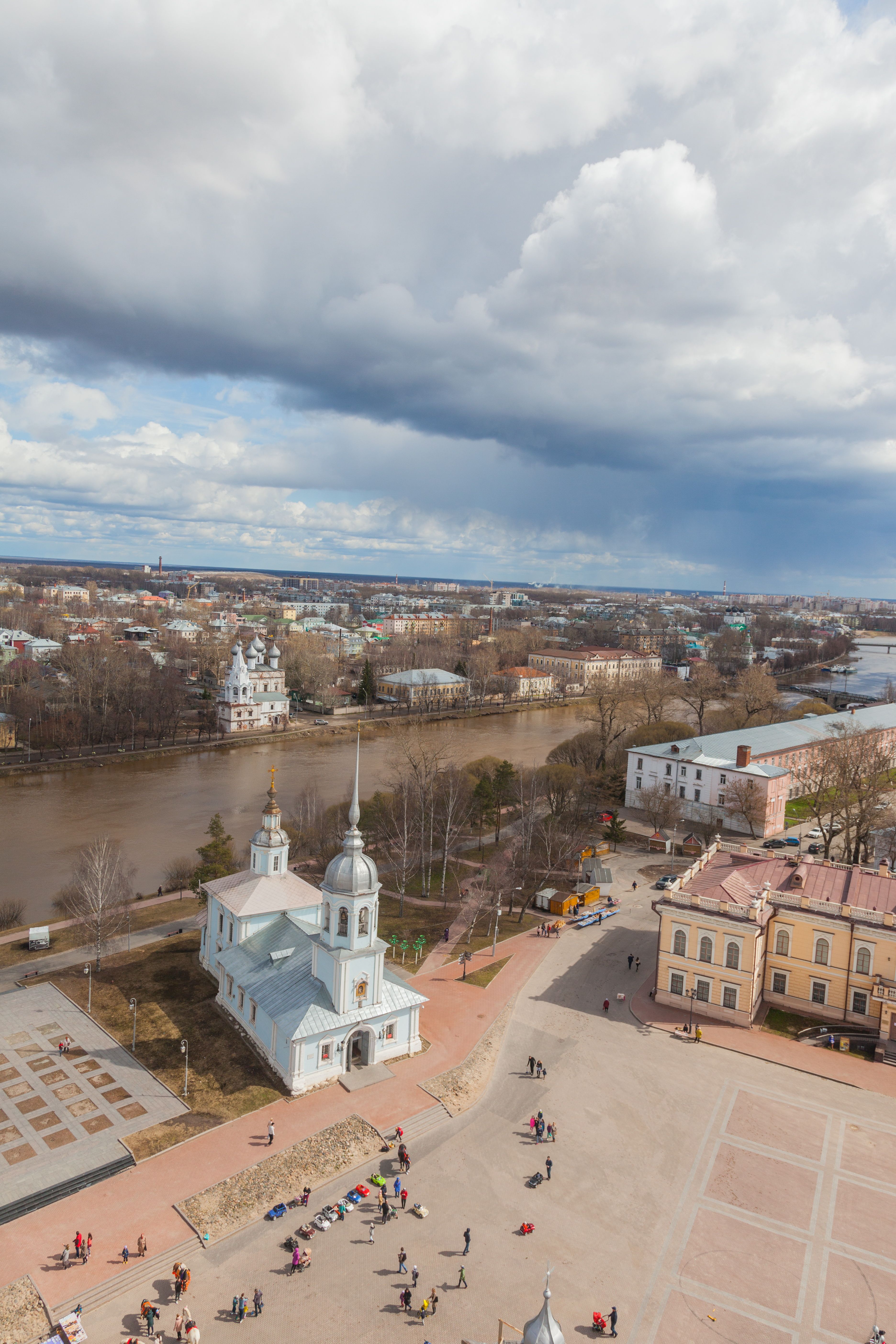 St. Sophia's bell tower in the modern form attracts attention of visitors to the Kremlin with its slender, tall, and gilded makowitz. From the bell tower there is a magnificent view of the city, an extensive panorama of urban areas is unfolding, and in the distance, beyond the city, the walls and towers of the Savior-Prilutsk Monastery can be seen.