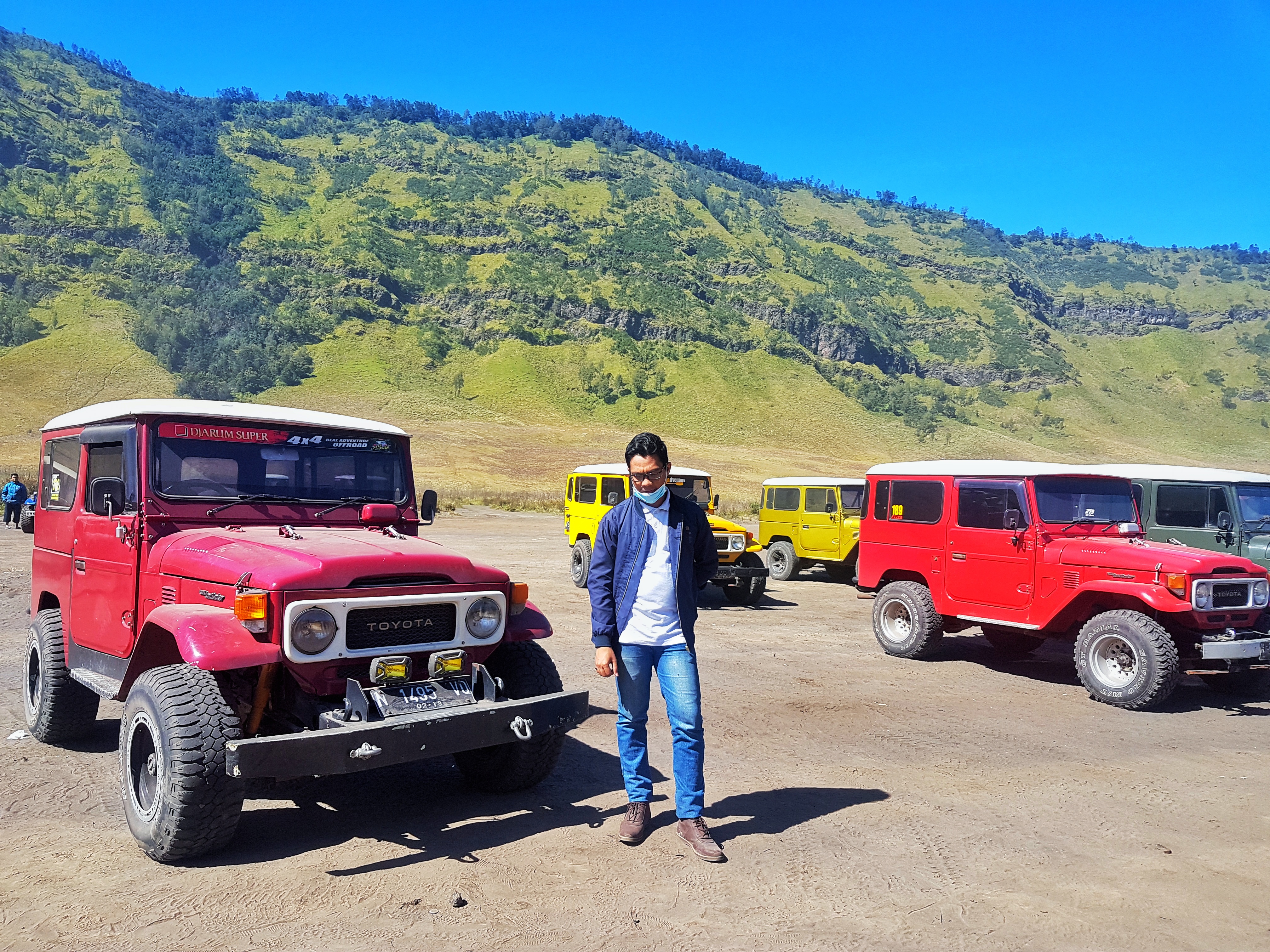 Perjalanan ini di mulai pkl. 22.00 wib menuju lokasi tempat berkumpulnya wisatawan yang akan melihat sunrise tepatnya di Penanjakan 1. Pada perjalanan saya tidak begitu memperhatikan keindahan alam yang ada karena berhubung pada masa perjalanan saya mengalami yang namanya “mabuk perjalanan”, ya kebiasaan untuk meminum antimo masih saja menjadi prioritas diperjalanan. Hal ini dikarenakan perjalanan menuju kesana melewati jalan dengan jumlah tikungan yang begitu banyak. Ketika tiba di lokasi, kita melakukan pemindahan mobil dari avanza menuju jeep yang siap memberangkatkan menuju tempat tertinngi untuk melihat sunrise. Sebelum menaiki jeep kami diberikan waktu untuk membeli sarung tangan, menyewa jaket dan syal serta masker (*jika tidak membawa perlengkapan), dengan waktu yang diberikan kami pun harus melakukannya mengambil semua perlatan yang diperlukan karena suhu pada malam itu berada di (-celcius) sangat dingin.