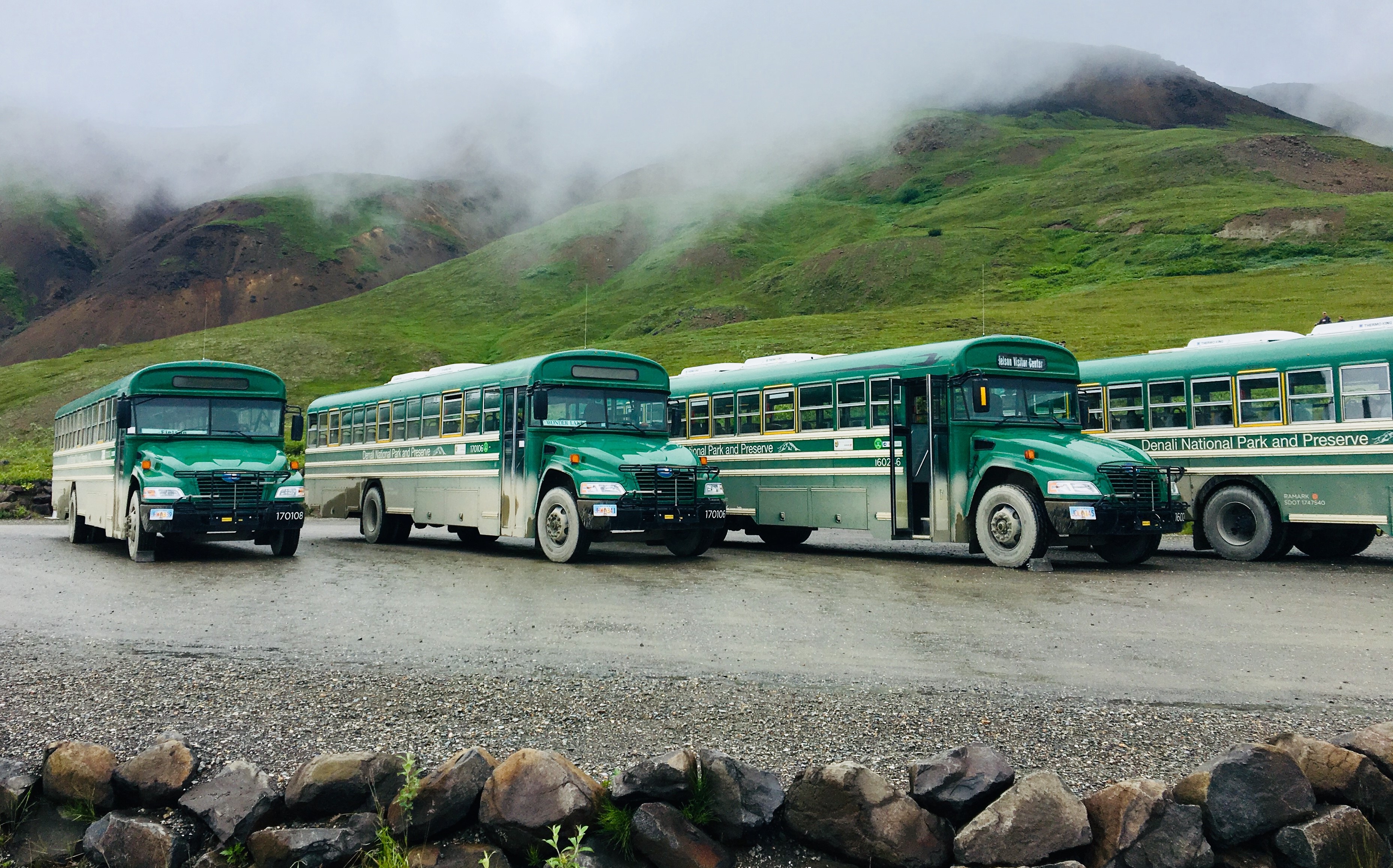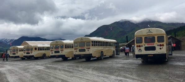 Climate in Denali is Unpredictable. Its rainy, cloudy and hot all within few minutes. Its highly recommended to go prepared. Busses stop at restroom stops for a maximum of 15 minutes and dont be worried if you miss the bus as you can get into any other bus based on seat availability. Those who wish to camp, trail the park can use the free transit busses to get in and out of the park.