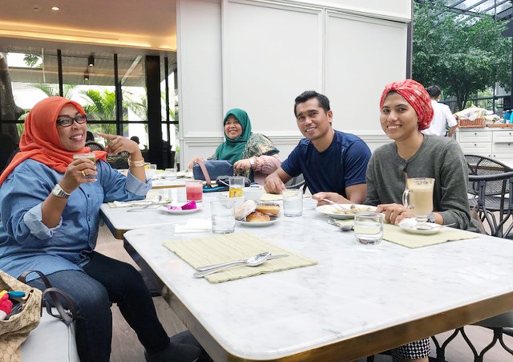 Before going to Surabaya, an old friend, Raihana Diani, had been in contact to make an appointment. He never told me he had moved to Surabaya with his husband and son. Do not tell me also if during their stay at JW Marriott while waiting is a rental house. The next surprise, Raihan, and his family were staying next to our room.