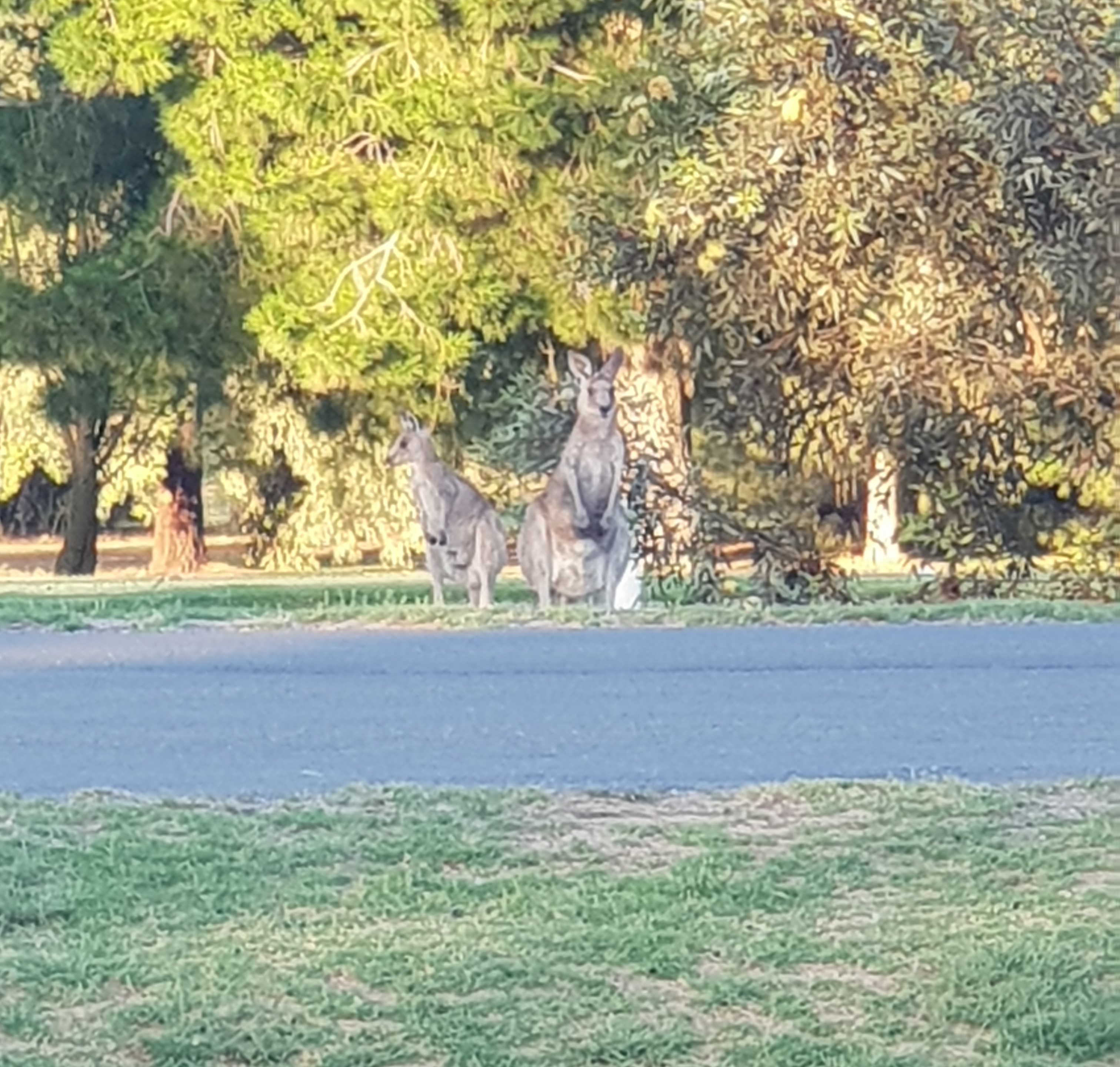 Hehehe the kangaroo must be waiting for someone to give him lift....