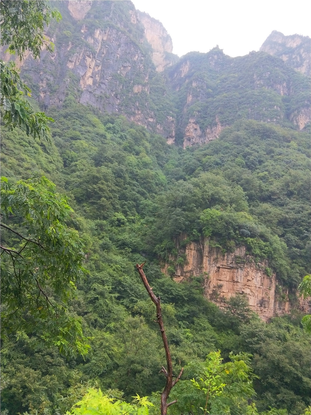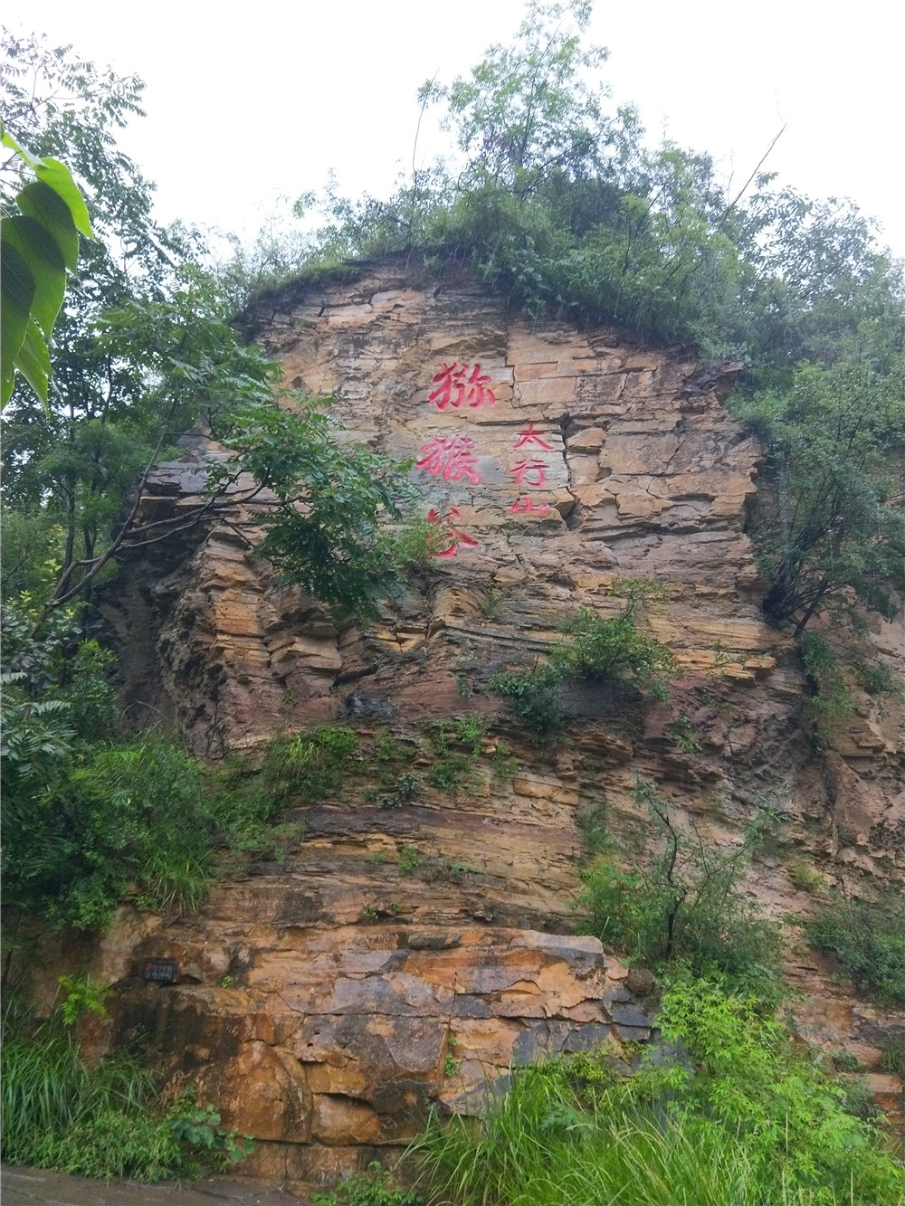 爬到山顶, 本来这个地方是猕猴出入最多的地方,但是天气阻碍了猕猴的行动。还好,我们朝着对面的山上望去,能看到猕猴在岩石上跳跃,只是手机拍照看不清楚。