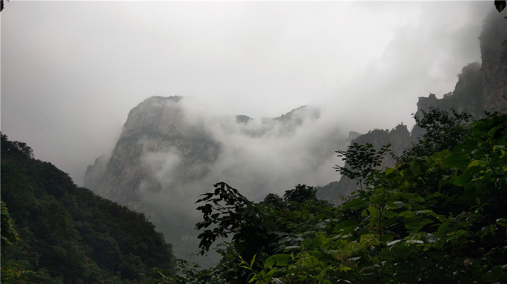 越往高处走, 雾气越大,有一段时间人就在云雾缭绕的山中穿行,仿佛电视剧里的仙境一般。 哈哈, 也许一会儿孙悟空拎着金箍棒出来了!但是依旧没见到一个猕猴。