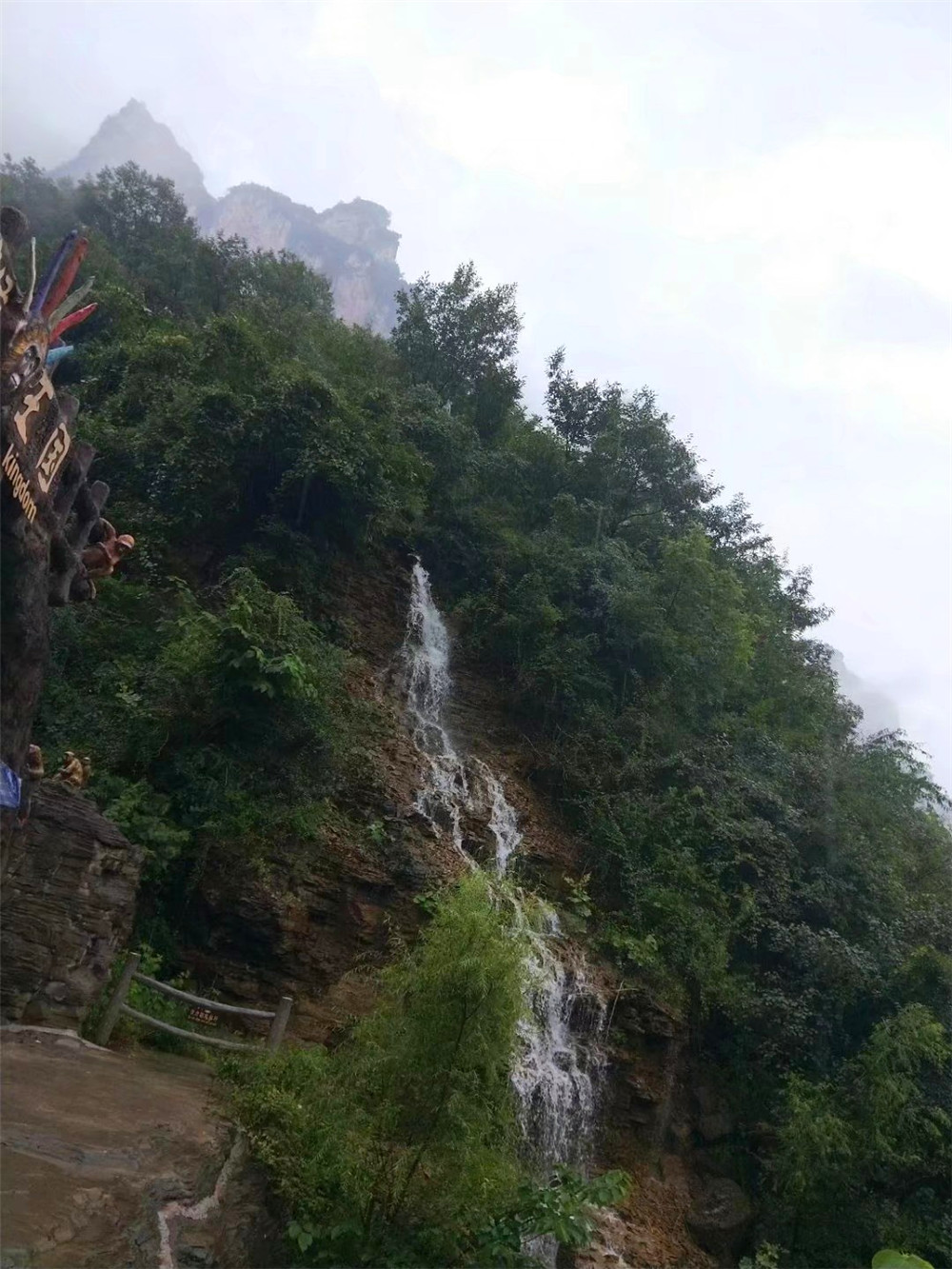 我们进入猕猴谷的时候, 天气潮湿,空中漂浮着雨丝。山中漂浮的阴云,时刻都预示着一场雨的到来。尽管如此,我们还是想进入到猕猴谷, 看看猕猴。可惜,因为天气的原因, 猕猴都躲到洞中, 不愿意出来,一只猕猴也没看到。这不能不说非常遗憾。