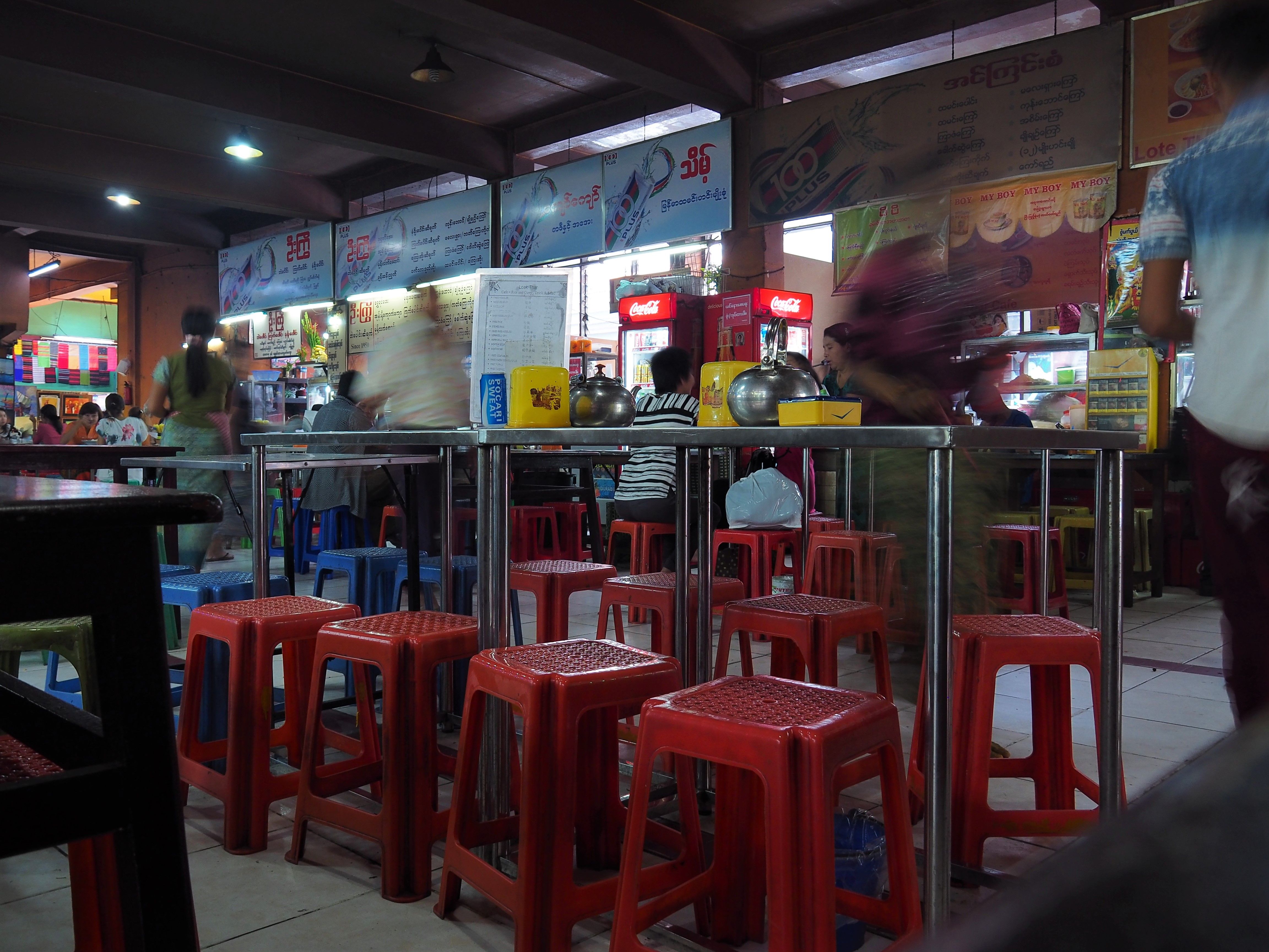 Dissapointed we checked the guide book and asked at our guesthouse, but there was no way to go alone. After some quite fun meals where we ordered stuff just by pointing and gesturing we left Loikaw again to get to my last destination in Myanmar: Yangon.