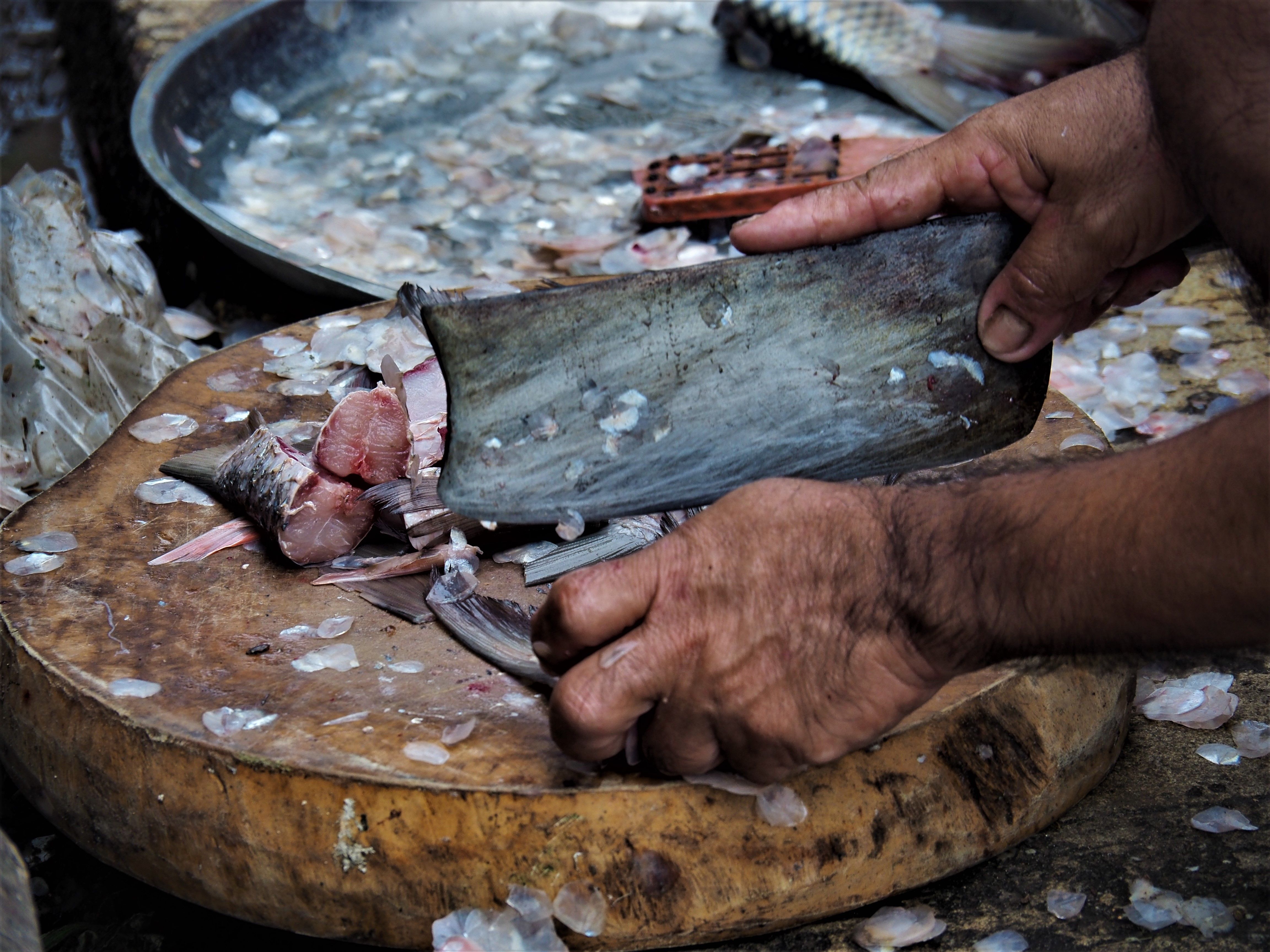 A man cutting fish on the streets