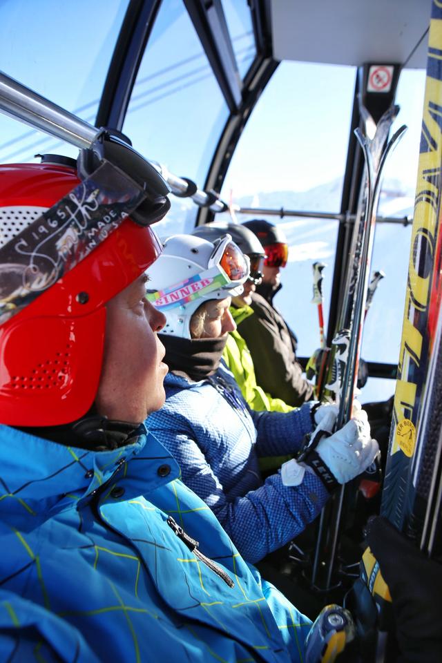During the ride up the mountain, there was a transfer, and I saw a lot of skiing from the top of the mountain to the other side. On the cable car you see the pine forests, the racetracks, and all the people who are skiing. I really admire the whole body, people's snow way too developed. And a lot of people are on the wild snow track. In this environment, it's really exciting to get involved in skiing.