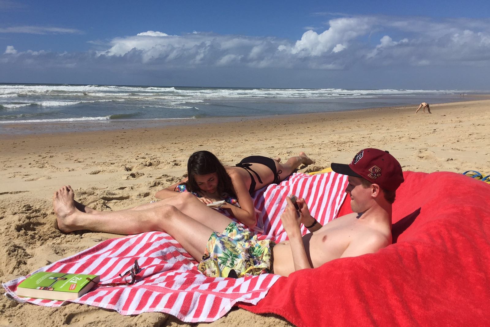 The beach here is the probably the best one i have been to, even though beaches can be hard to compare. Of course this one isn't comparable to white sand, light blue water beaches of the Maldives, but it has its perks. The tides are nice, as water comes and goes (but not too far) and the WAVES are the factor that really make this beach awesome: They are HUGE! You can either just go in and battle them, trying to hold your ground while diving through them, or you can take a body or surf board and ride them 100 yards all the way back to the beach. Incredibly fun and a great workout ;-)