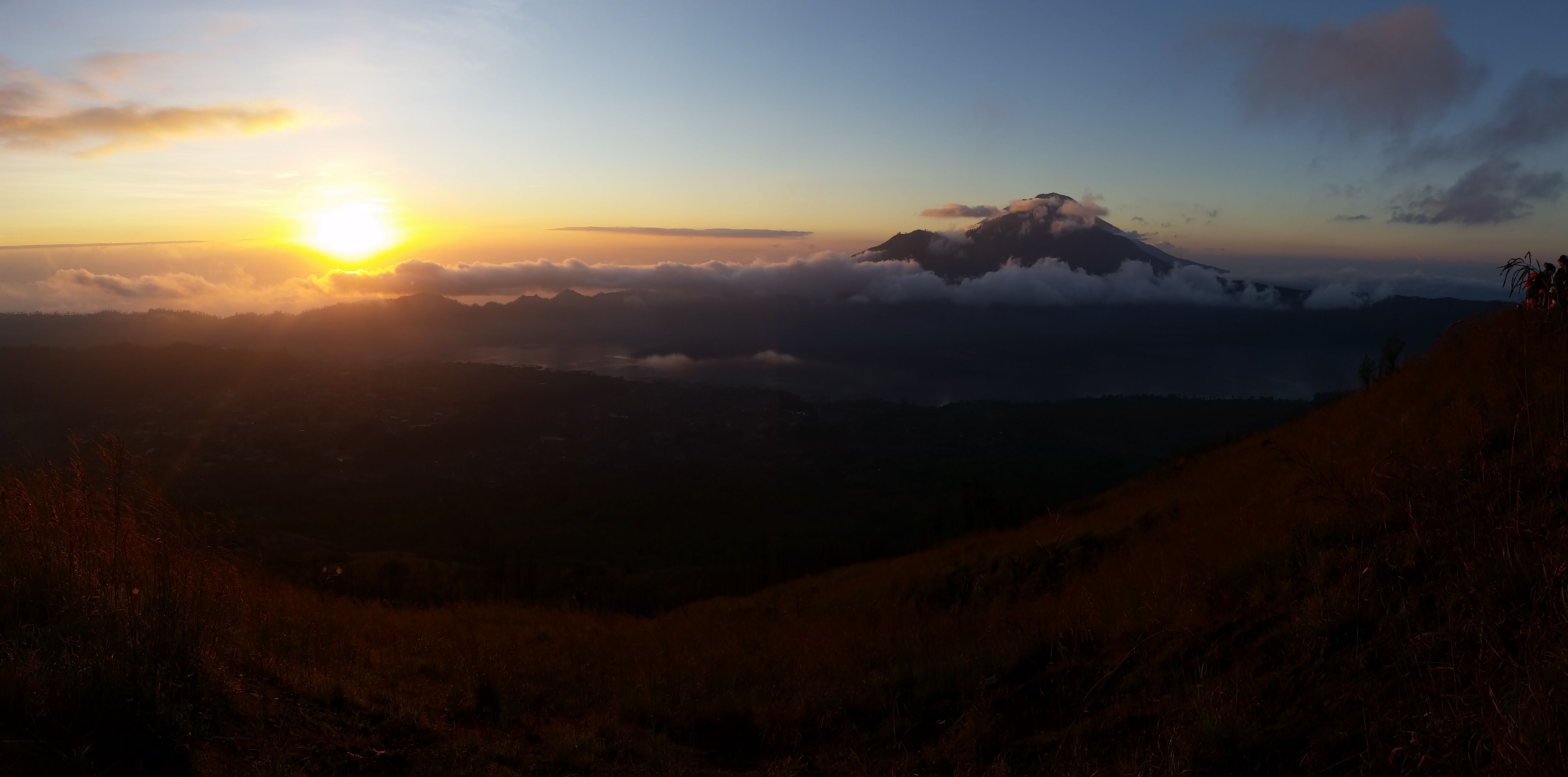 The view on top of The Mount Bathur at sunrise after a hike in the middle of the night.