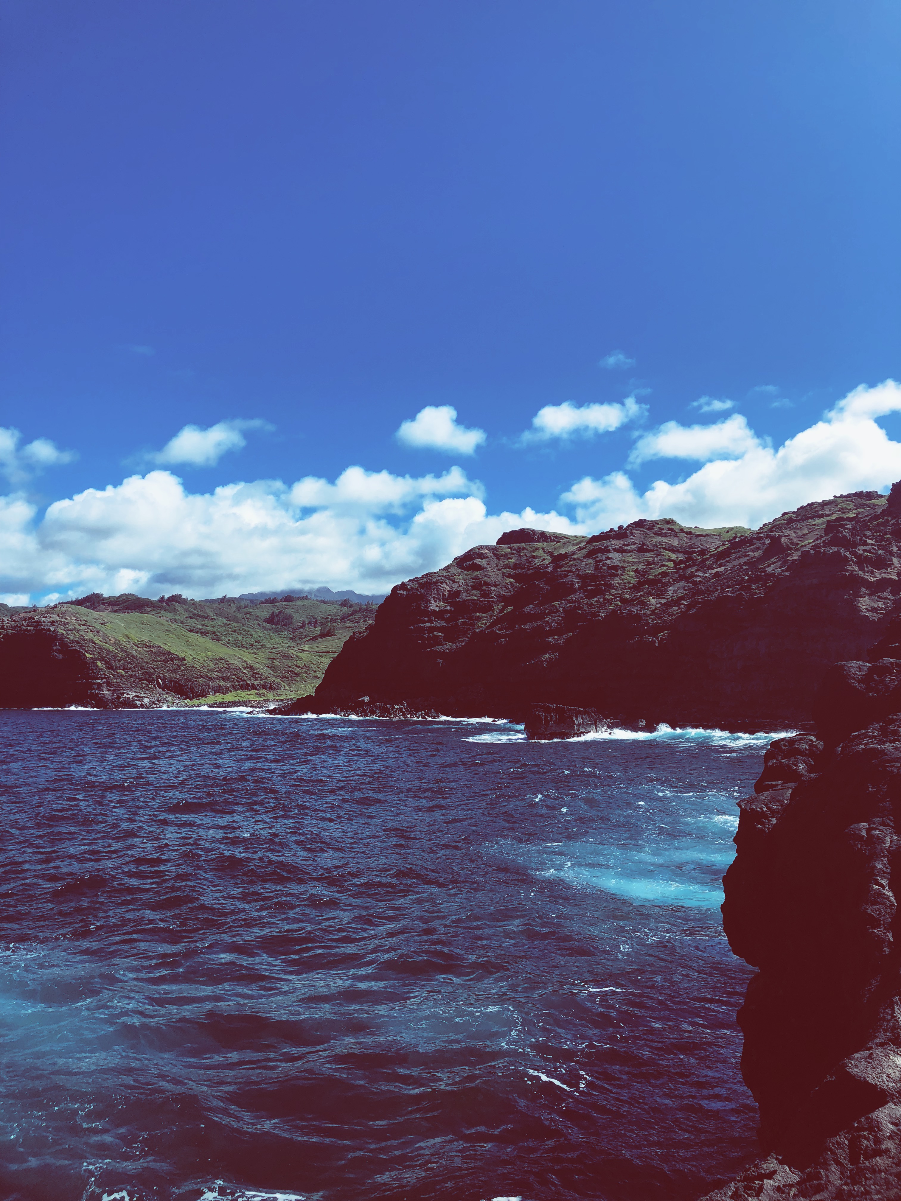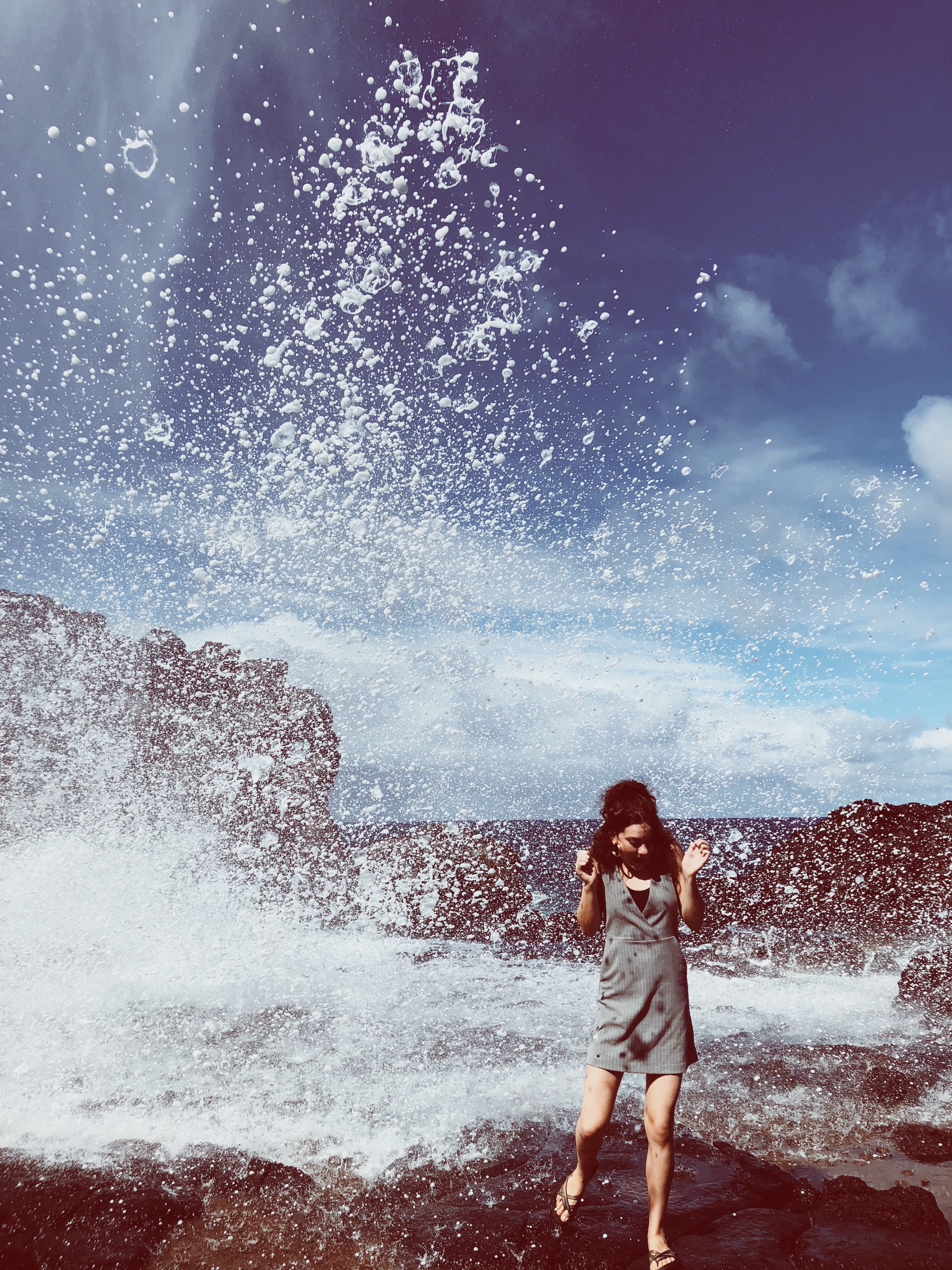 The Nakalele Blowhole in Maui is a must stop for all Hawaiian travelers, the ocean waves crash against the cliffs edge and protrudes under the cliff and explodes out of the hole about 20 feet from where the wave crashed. If you stand too close you will definitely get 'rained' on! The clear blue skies and mist of the ocean is calming, and there are many more places to explore while visiting the blow hole.