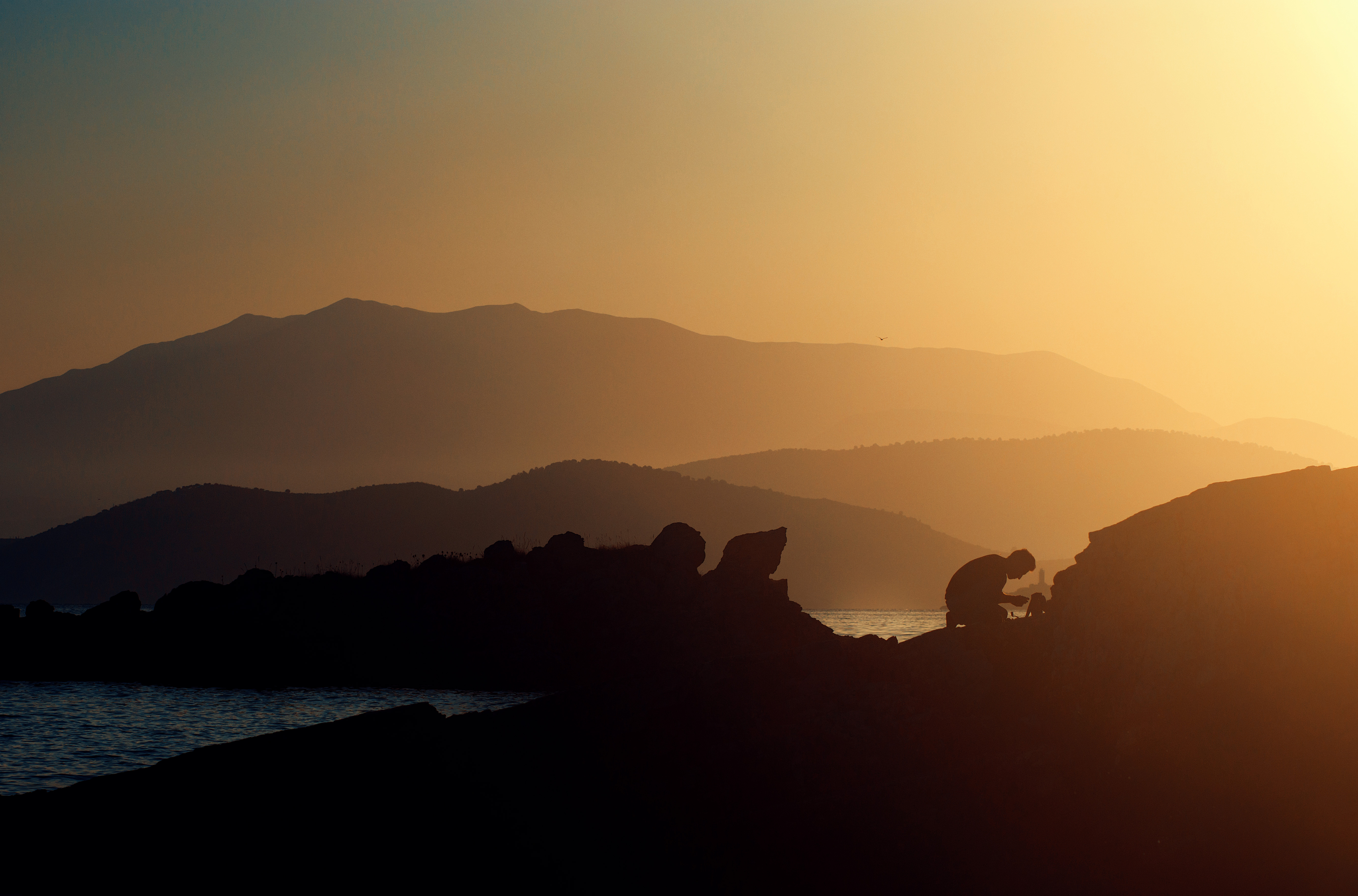 Photo taken on Bataria Beach. The beach is located in a small town of Kassiopi at the north end of Corfu island, Greece. I was taking some sunrise photos and at the end of the sesion as i was thinking of going to my apartment i seen this scene.