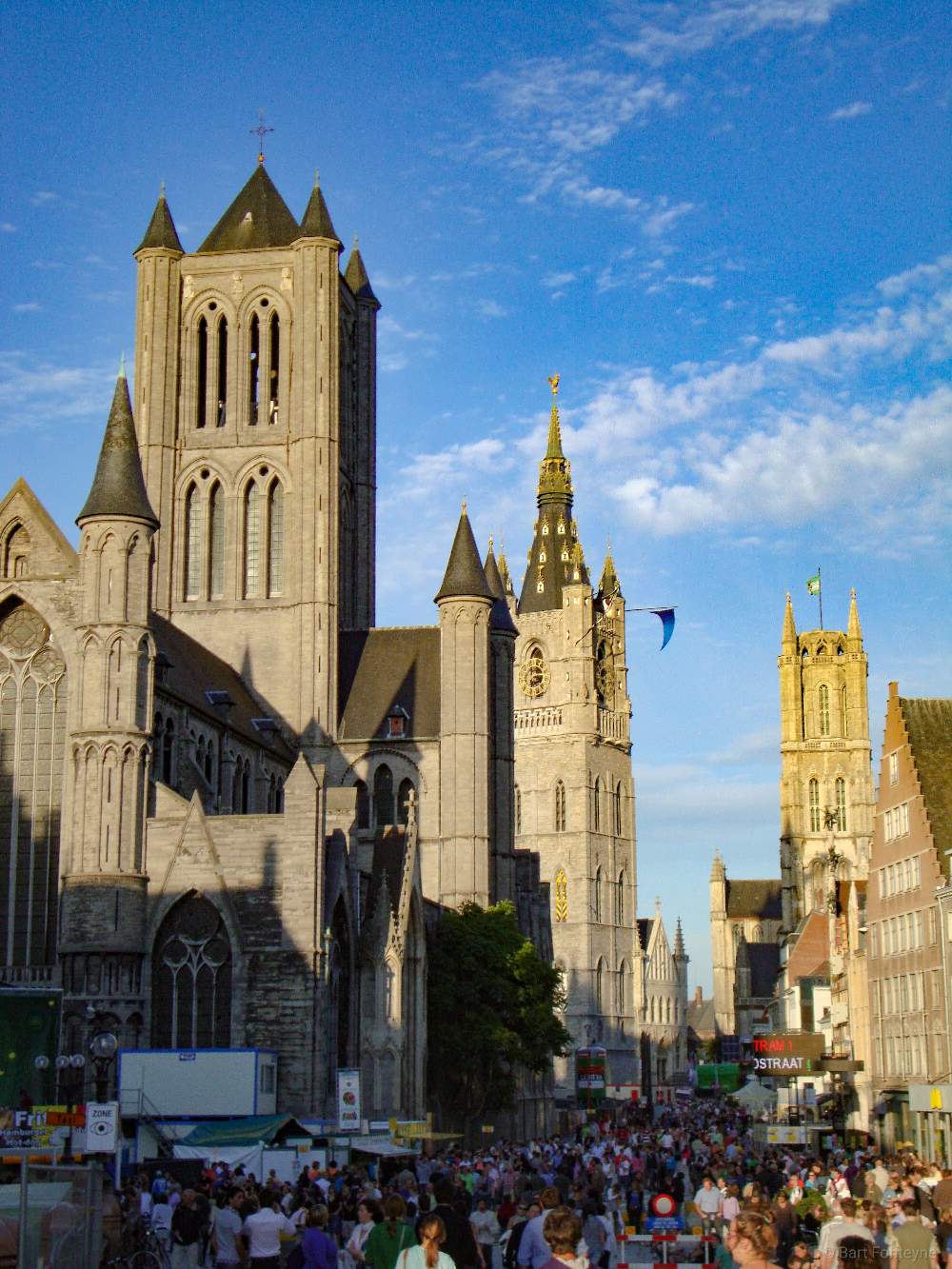 On the photo you can see the typical skyline of Ghent, which has been there for centuries. These are three towers built in the downtown of Ghent.