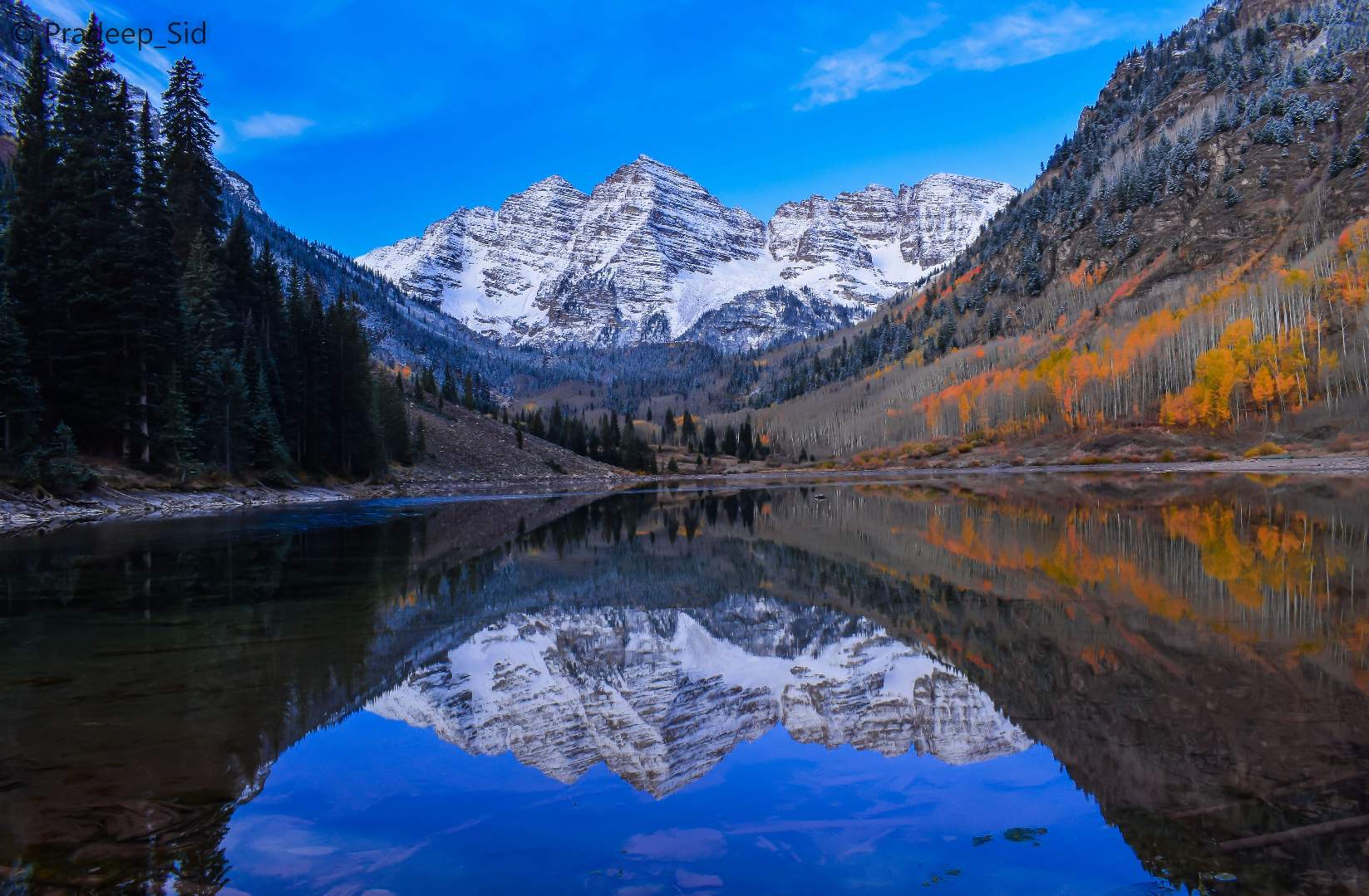 The Maroon Bells are mountain peaks in the Elk Mountains located close to Apsen, Maroon Peak and North Maroon Peak. These peak points are separated by about a third of a mile. The mountains are the line of separation between Pitkin County and Gunnison County of Colorado, United States. Which is about 12 miles south to Aspen. Both peaks Maroon Peak and North Maroon Peak are above 14,000 feet where Maroon Peak is 150 feet taller than North Maroon Peak.
