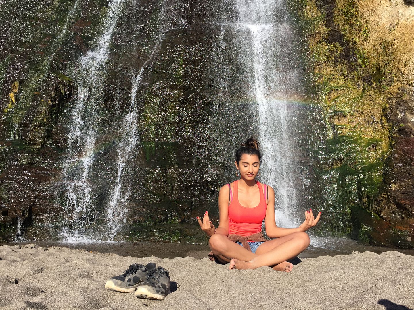 Once I cautiously climbed down, it really was not as bad as it looked and found that the waterfall cascaded down to the beach as well. I sat under the waterfall and found my moment of zen. A feeling of warmth filled me and I made peace with nature. It may have bullied me for hours but it was well worth the reward.