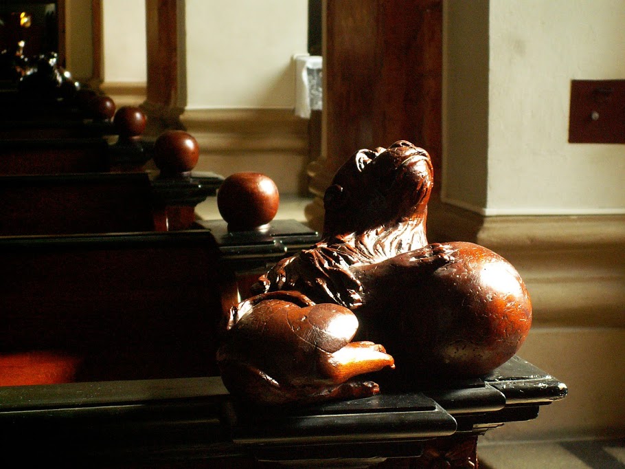 People in old times took care of details ignored in modern times. Small wooden sculptures on the seats in the church: