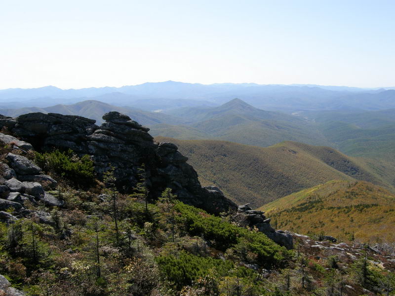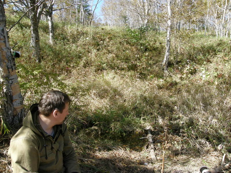 Day 6: Met sunrise. Gathering things marked on the trigonometer, took a photo on his background and went down. We had a huge panorama of the bewitching autumn taiga, where each tree had its own shade of color. Now I’ll be a little more and become a poet))) to me, and so, something recently began to like Yesenin’s poems! On the way I came across wild grapes and something else edible from berries I don’t remember what. Going down the cliff they made a halt deciding that it makes no sense to go out on the track in the evening and catch a ride there. On the way a couple of times there were traces of a tiger, and already during dinner (and as it turned out that not only we, but also the tiger had dinner) there was a guttural cry of musk deer, which was obviously just eaten 200 meters from us. For the full effect, Vova told us a terrible story about rustling in the dark on Misty.