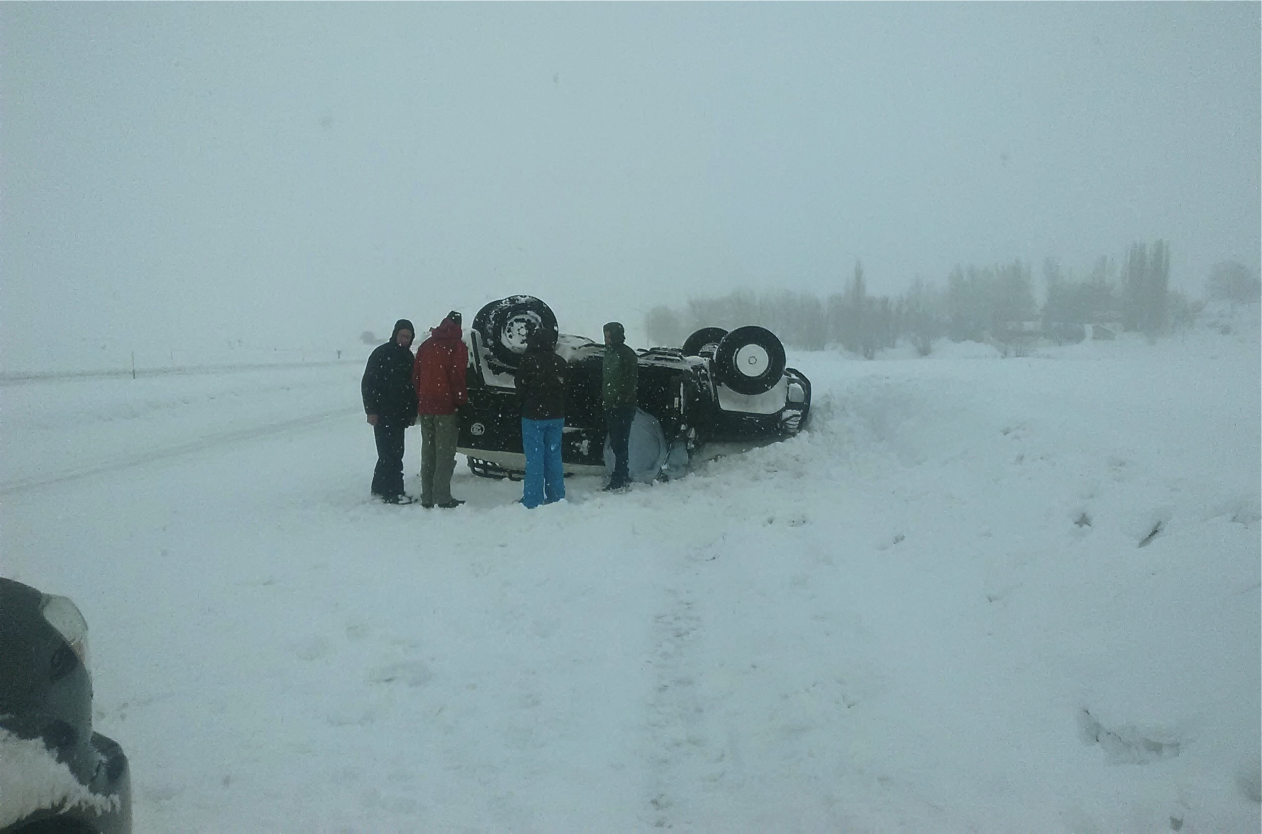 The lady was ok luckily. It was really hard to see the highway. It was almost a complete white out. And even while we were stopped helping this lady people were flying by us at high speeds with no chains or snow tires... I thought for sure I was gonna see someone die that day. There was a big rig and 2 other trucks that slid off the highway, but luckily no one we saw was badly hurt.